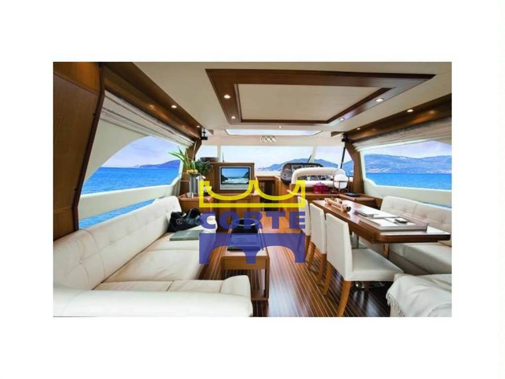 SALONE :Aria condizionata,Finestratura basculante poppiera in cristallo e telaio in acciaio inox,Mobili con ante, ripiani e cassettiera,Piano di calpestio in teak rigato acero,Salotto (divano in pelle ad L, tavolino da fumo in teak, Sistema Home Cinema Bose 3.2.1 GSII (altoparlanti (2), subwoofer, altoparlanti (2)in pozzetto)Tendine veneziane in legno (finestrature laterali, finestratura basculante poppiera)TV LCD 26" ZONA PRANZO :Aria condizionata, Divano in pelle ad L, Mobili con ante e ripiani Piano di calpestio in teak rigato acero Porta scorrevole poppiera in cristallo e telaio in acciaio inox, Sedie in pelle (3),Tavolo pranzo in teak, Tendine veneziane in legno (finestrature laterali, zona poppiera),Piano di calpestio in moquette, Prese (TV, 230V)Ripiani, Sinto lettore CD (+2 altoparlanti),Tende arricciate, Testaletto in tessuto, Vano porta oggetti (testaletto), Vetrata a scafo (oblò apribile in acciaio inox, CUCINA : Aria condizionata,Aspiratore piano cottura, Copertura ribaltabile in teak per lavello e piano cottura, Finestratura laterale con apertura basculante, Forno elettrico e microonde combinato, Frigorifero 218 lt 230V (24V tramite inverter), Lavastoviglie 6 coperti, Lavello in acciaio inox con acqua dolce calda/fredda e salata, rubinetto abbattibile, Mobili con ante, ripiani e cassettiera, Piano cottura in vetroceramica 4 fuochi con fermapentole, Piano di calpestio in teak rigato acero, Piano di lavoro in quarzo/resina, Quadro elettrico cucina, Servizio da tavola in porcellana per 8 persone, bicchieri, posate in acciaio inox, PLANCIA : Aria condizionata, Bussola magnetica, Chartplotter Raymarine con display 12Ó a colori e GPS, Contacatena elettronico digitale, Display MAN per monitoraggio dati barca, Divanetto comandante in pelle due posti ribaltabile con vano porta oggetti/carte, Leve gas-invertitore elettroniche con funzione easy-