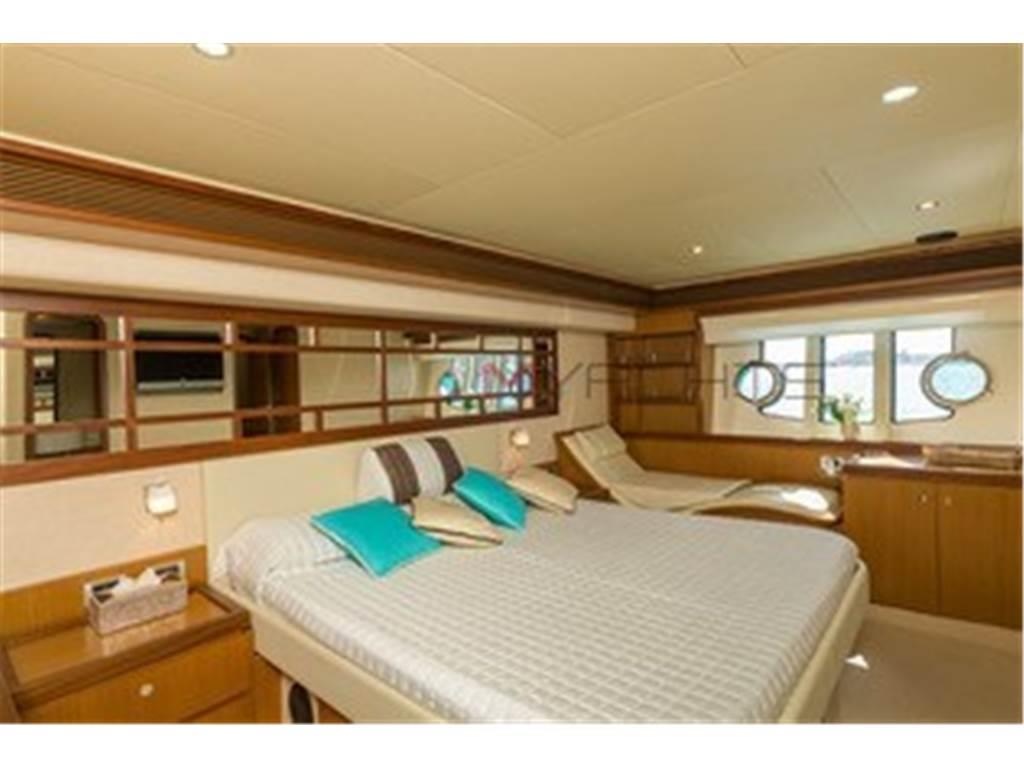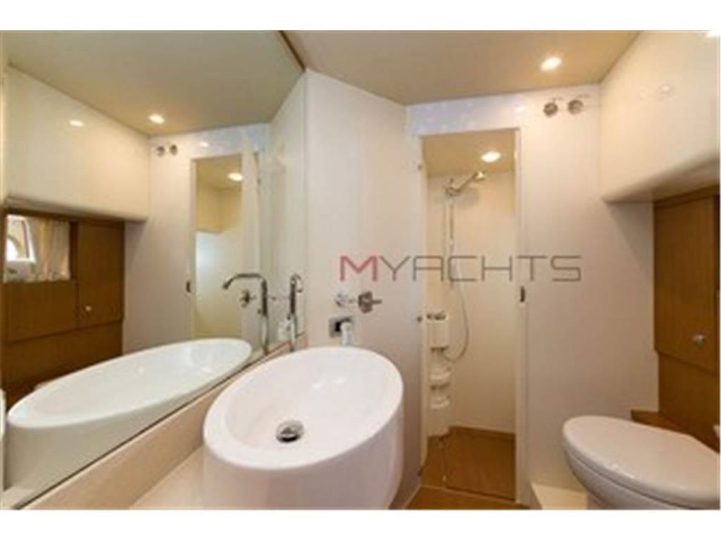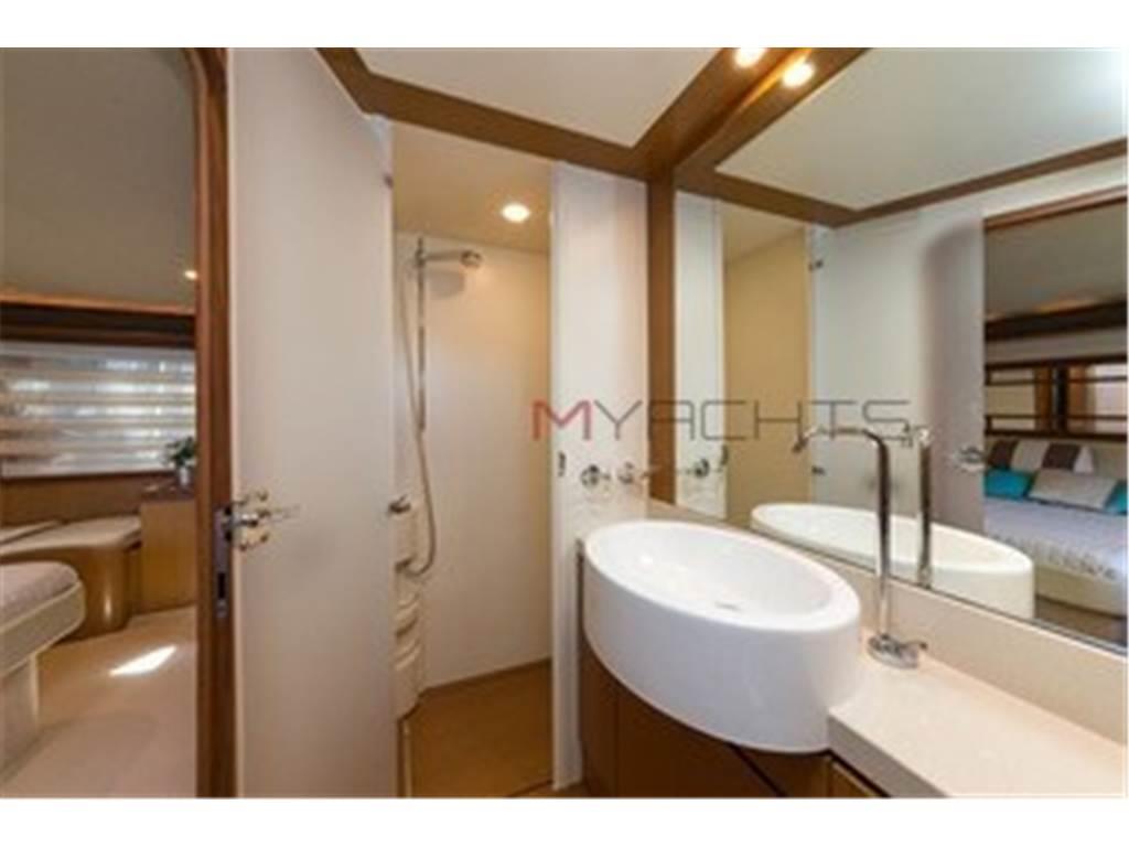 The master cabin presents an open view window, another big effort in terms of space optimization which made the yacht more similar to the bigger boats of the Ferretti Yachts range.
