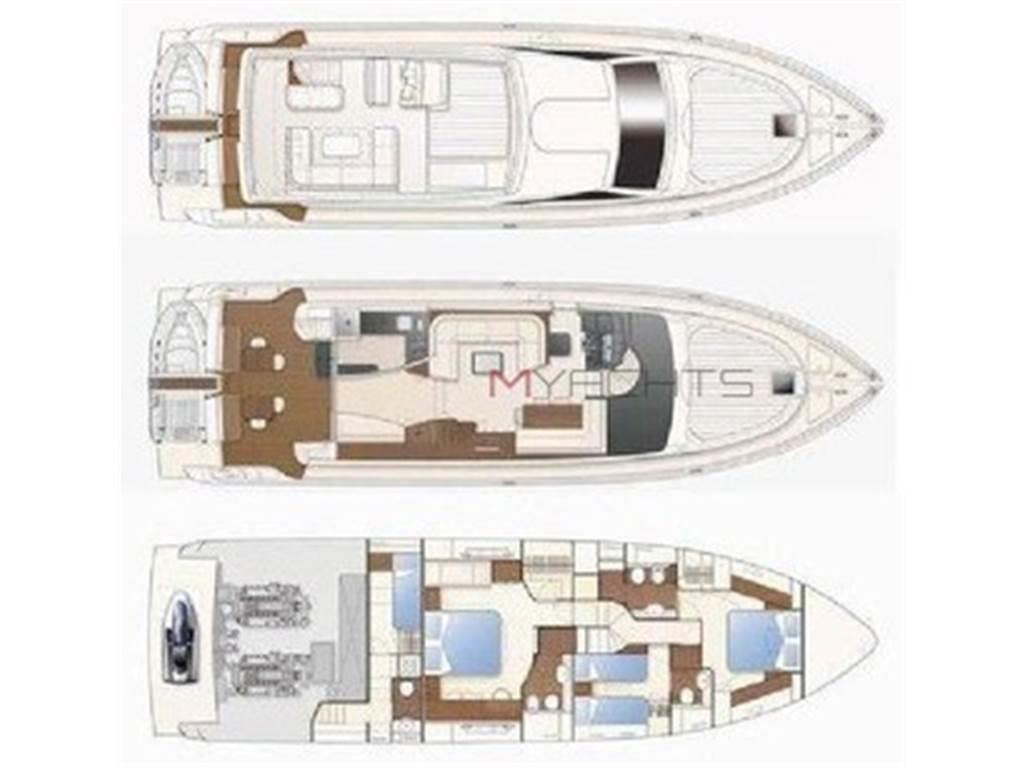 Yacht only for charter. This Ferretti 630 is available in Sardinia, Corsica, Naples, Sicily according with booking. Built in year 2008 and refitted in 2016. She can accommodate up to 6 guests in 3 cabins, 2 double and 1 twin. All cabins with private ensuite. 2 Crew, Captain and chef/Deckhand.