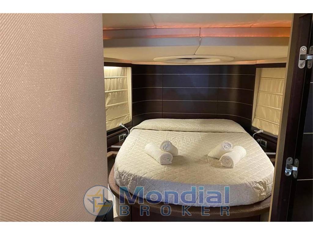 Cabina dell'armatore con letto diagonale e dinette, molto luminosa grazie alle sei finestre quadrate. Il bagno ha una doccia separata con doppio scarico d'acqua ed un elegante lavabo in vetro con barra in acciaio inox.