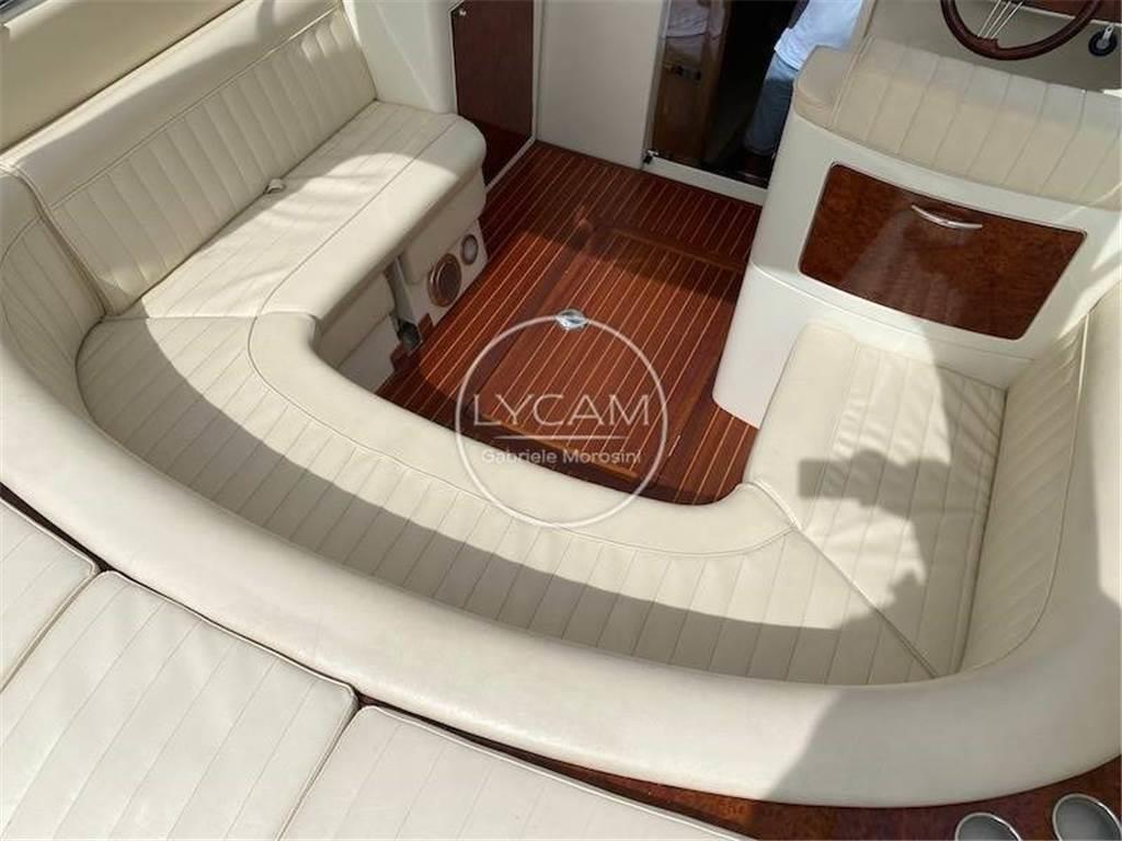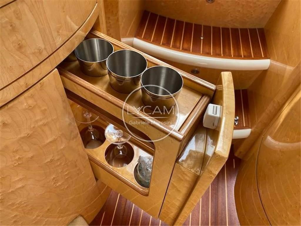 Luci di via; Luce di fonda; Luce pozzetto; Tromba; Flaps; Batterie; Parallelo batterie; Stacca batterie; Presa a terra 220V; Caricabatterie; Generatore mod. Mini 40 3.5 Kw; Parabordi; Pozzetto in teak; Mezzomarinaio; Asta bandiera in legno; Plancetta in teak; Doccetta pozzetto; Cappa copertura barca; Scaletta bagno; Aria condizionata; Capote cabriolet; Cuscinerie prendisole prodiero e poppiero; Verricello elettrico; Battagliola di prua; Ancora inox; Pompa sentina automatica; Tavolo pozzetto in teak.