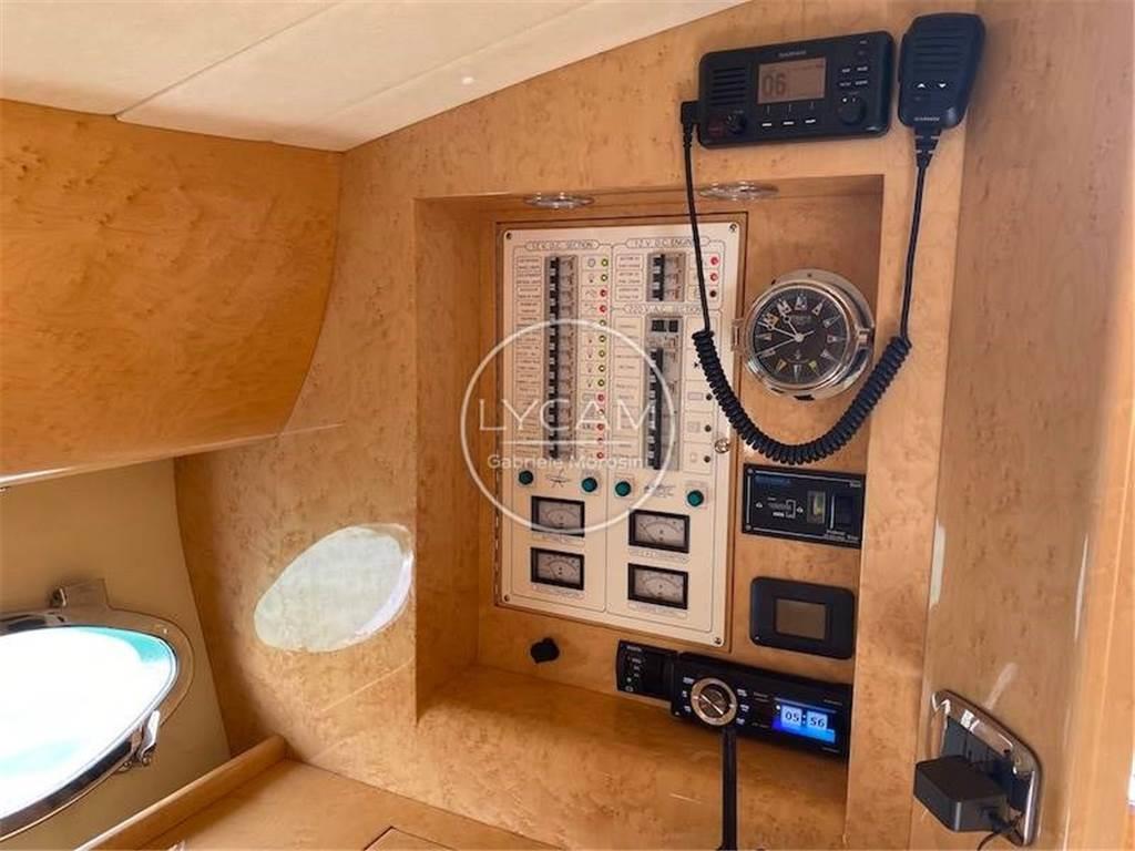 Manette del gas; GPS-Plotter Garmin 2023, VHF, Bussola; Strumenti motori; Contamiglia; Ecoscandaglio 3800; Radio; Altoparlanti pozzetto.