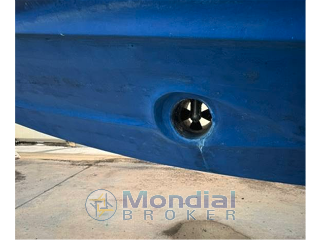 Hangar tender - piastra con frigo e lavabo nel pozzetto - cuscineria esterna completa - generatore - antenna TV - passerella idraulica - tendalino camper cover - teack pozzetto e plancetta - calpestio interno dinette in acero e mogano - clima caldo/freddo in ogni ambiente - faro 360°- Elica di prua .