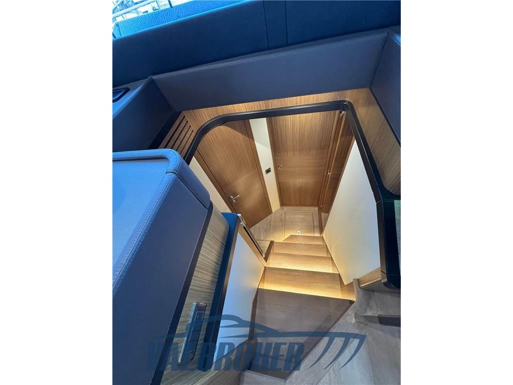Trawler apprezzato per l'equilibrio tra comfort, efficienza e manovrabilità. Prodotta dal cantiere italiano questa versione si distingue per la carena planante che permette navigazioni sicure sia a basse velocità che in planata. Equipaggiata con 2x Volvo Penta IPS 650 che facilitano le manovre grazie al joystick. Cabine: Dispone di 3 cabine (Master a centro barca con bagno en-suite, VIP a prua e una terza cabina ospiti con letti doppi).
