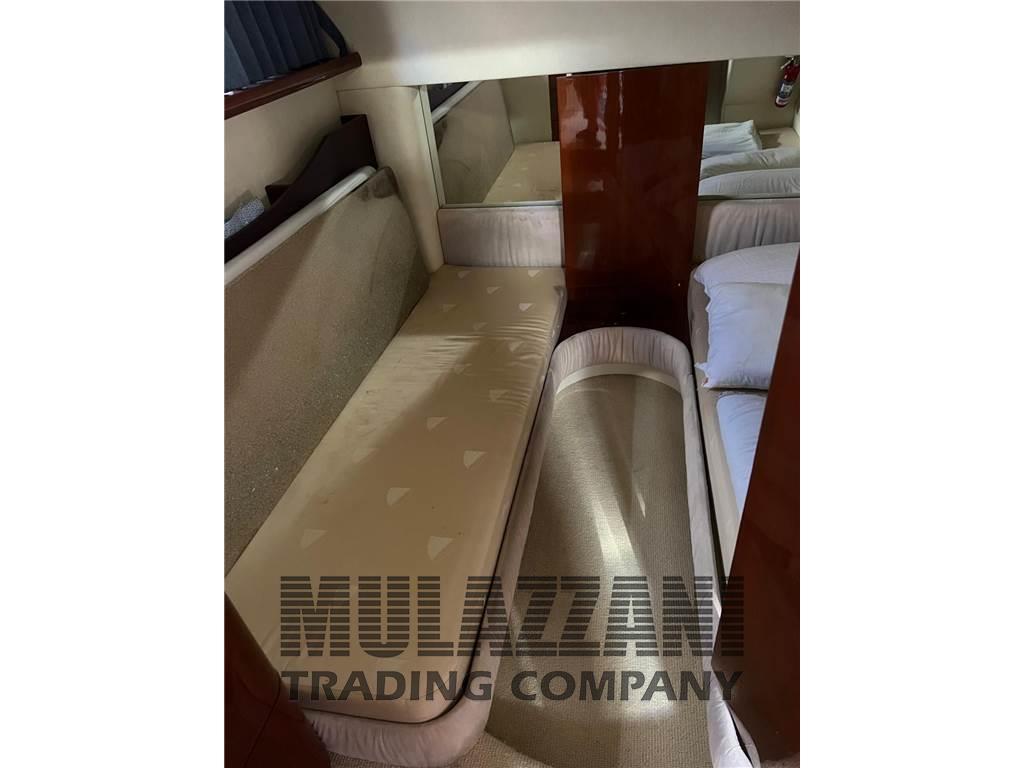 Allarme motore, Allarme sentina, Ancora, Angolo barra, Antenna radar, Autoclave, Autogonfiabile, Batterie, Bussola, Caricabatterie, Comando motori elettronico, Computer di bordo, Contametri catena, Contamiglia, Display, Doccia esterna (Calda/Fredda), Ecoscandaglio, Elica di prua - bow thruster, Faro orientabile, 2 Flap idraulici, Garage per tender, GPS (Raymarine), Hard top, Indicatori Flaps, Lavaggio catena, Luci di cortesia, Passerella, Piattaforma, Pilota automatico (Raymarine), Plotter, Plotter con antenna GPS (Raymarine), Pompa di sentina elettrica, Pompa di sentina manuale, Porta ingresso, Pozzetto Teak, Presa 220V banchina, Presa acqua banchina, Radar, Radio VHF, Salpa Ancore Elettrico, Scaletta da bagno, Sedile Copilota, Tavolo pozzetto, Tavolo Salone Abbattibile, Tender (Motore Suzuki), Tromba, Winch tonneggio di poppa, Winch tonneggio di prua