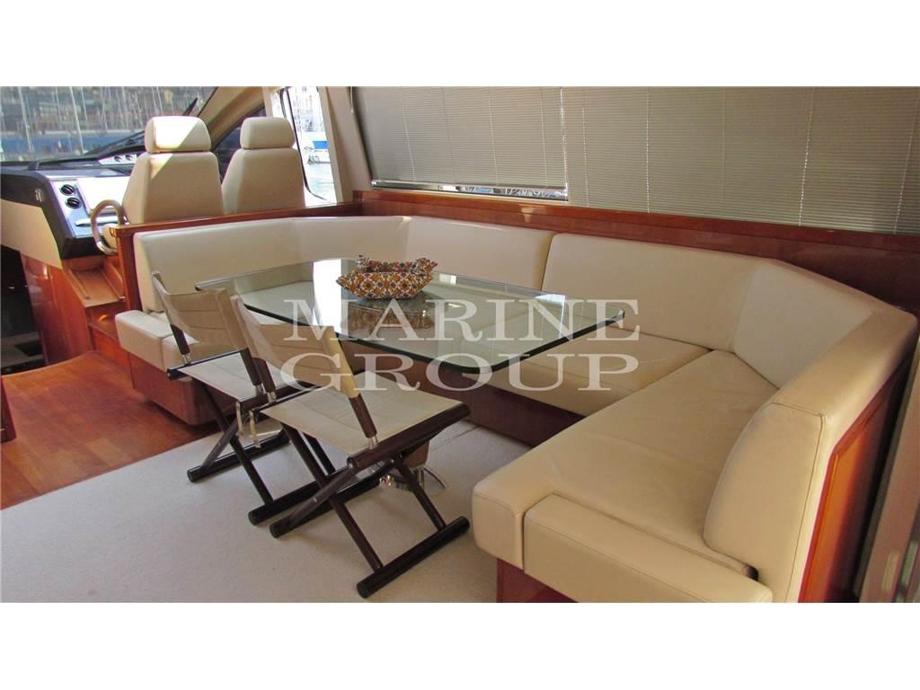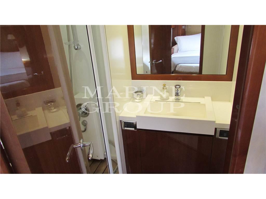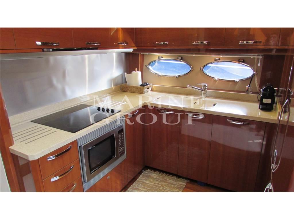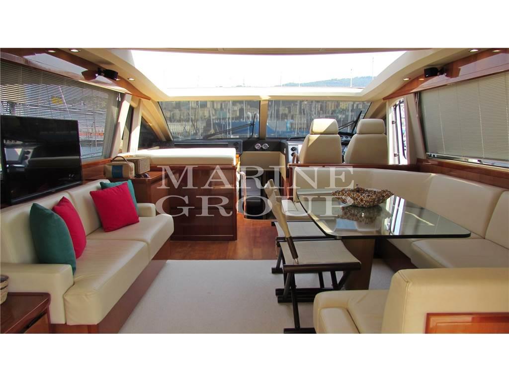 Ampio pozzetto con prendisole e tavolo con sedute e porte scorrevoli - Salone interno con tv a scomparsa - Cucina attrezzata - Cabina armatoriale a centro barca con bagno ensuite - Cabina Vip a prua con letto matrimoniale e bagno ensuite - Cabina ospiti con letti a castello e bagno ensuite - Cabina equipaggio con bagno a poppa