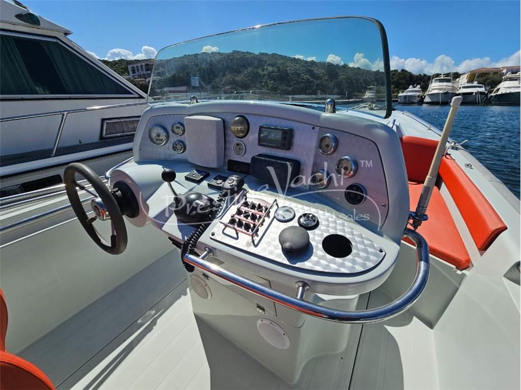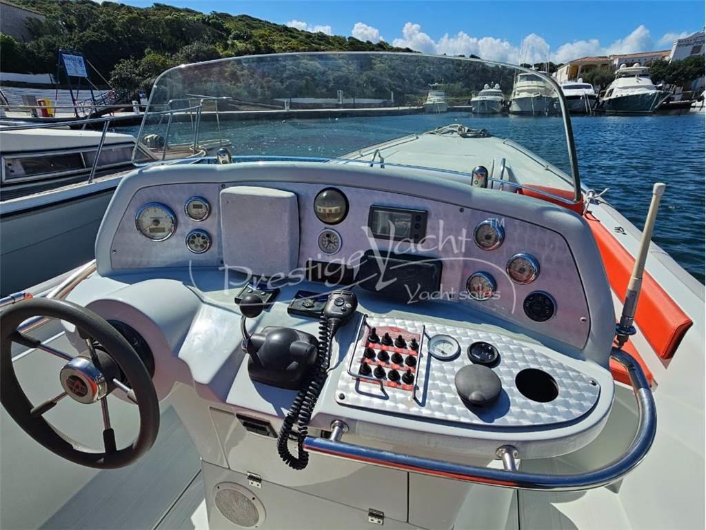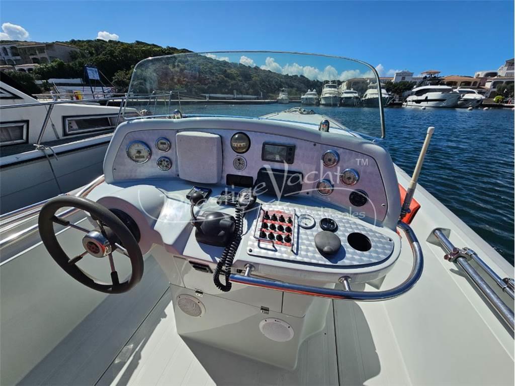 Allarme motore, Ancora, Autoclave, 02 Batterie, Caricabatterie, Colorazione speciale (Blue), Doccia esterna, Flap idraulici, Impianto antincendio, Luci di cortesia, Piattaforma, 02 Pompa di sentina automatica, Porta di ingresso, Presa 220V banchina, Salpa ancora elettrico, Scaletta da bagno, Tavolo in pozzetto, Tromba Cucina, Frigorifero esterno Prese interne 12V, Wc marino elettrico Altoparlanti, Stereo Bussola, Comando motori elettronico, Contamiglia, DSC vhf, Ecoscandaglio, GPS, Plotter, Radio VHF Bimini, Copripozzetto, Cuscineria di poppa, Cuscineria di prua, Cuscineria pozzetto, Telo copri consolle, Tendalino