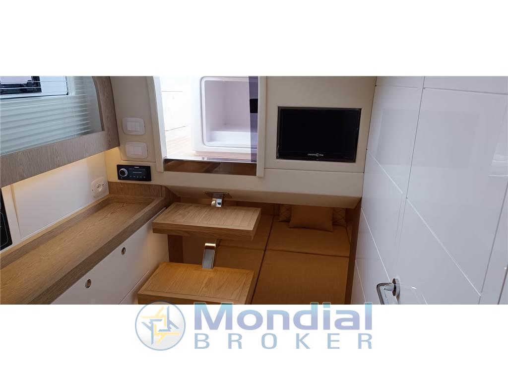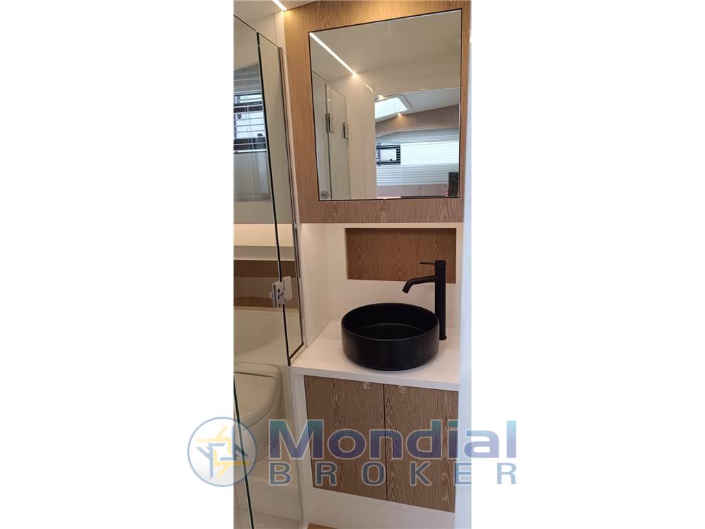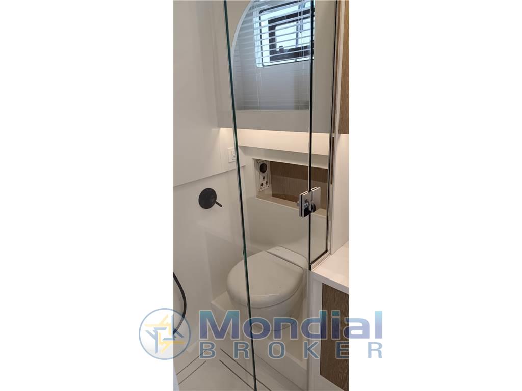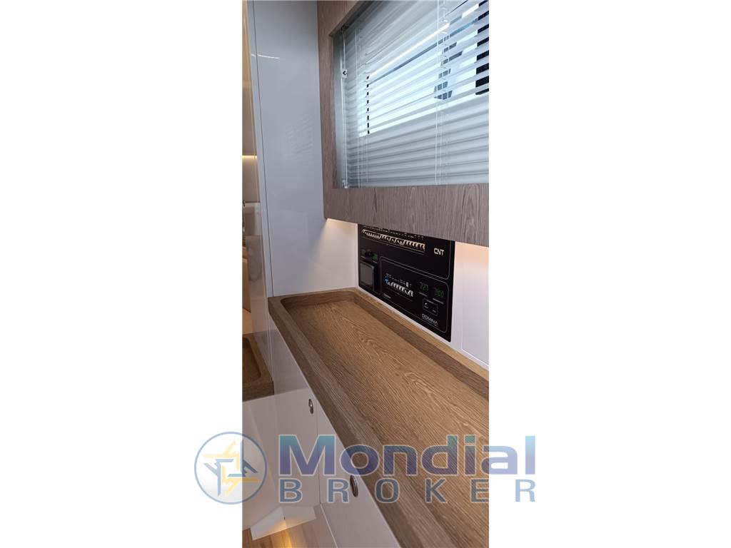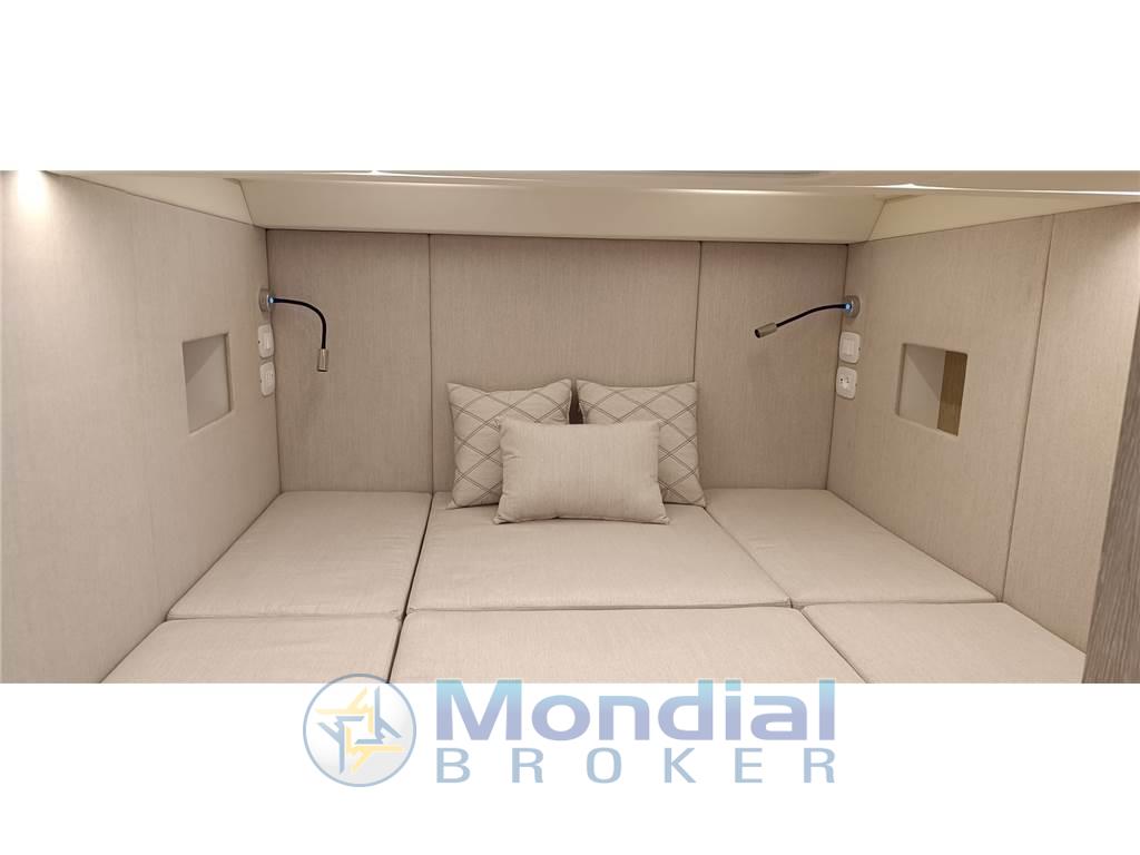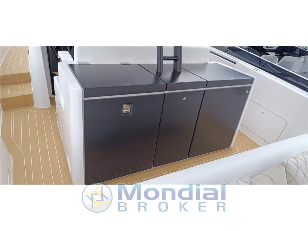 Elica di prua elettrica - flap interceptor Humphree - impianto stereo Fusion high performance - tenda filtra sole a poppa con pali in carbonio - tenda filtra sole a prua con pali in carbonio - dinette di prua convertibile in prendisole - dinette di poppa convertibile in prendisole - caricabatterie con presa corrente banchina - ancora e catena inox - mobile cucina in pozzetto con frigo, lavello e piano cottura - luci sommerse a poppa - passerella in carbonio manuale - TV LCD - antenna TV.