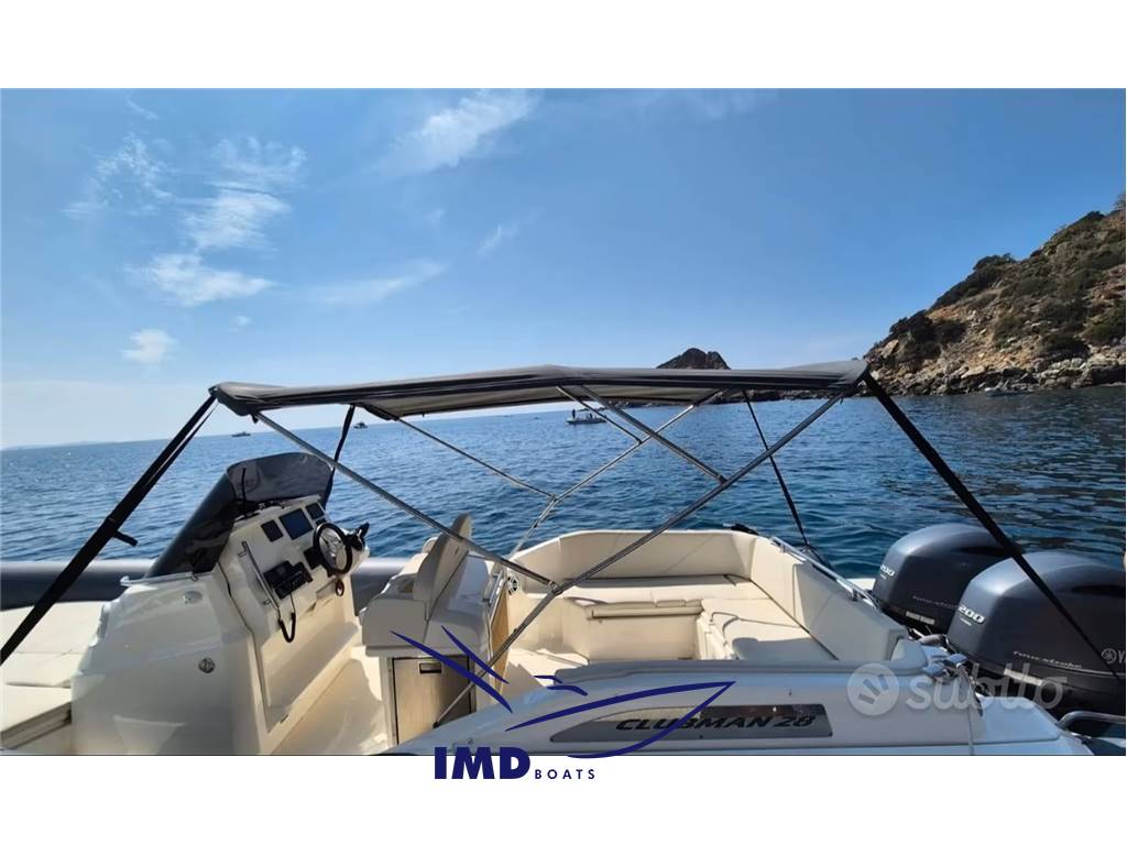 Joker Clubman 28 motorizzato 2x200hp Yamana gommone e motori anno 2022 ore 160 circa, motori in garanzia ufficiale Yamaha fino al 2027 Strumentazione elettronica Raymarine Axiom 7" Gps ecoscadaglio, strumento contametri catena, verricello elettrico con catena ed ancora dedicata, cariba batterie 40 amp con cavo e presa in banchina tendalino inox originale zona poppa con teli laterali e prolunga per la zona di prua,