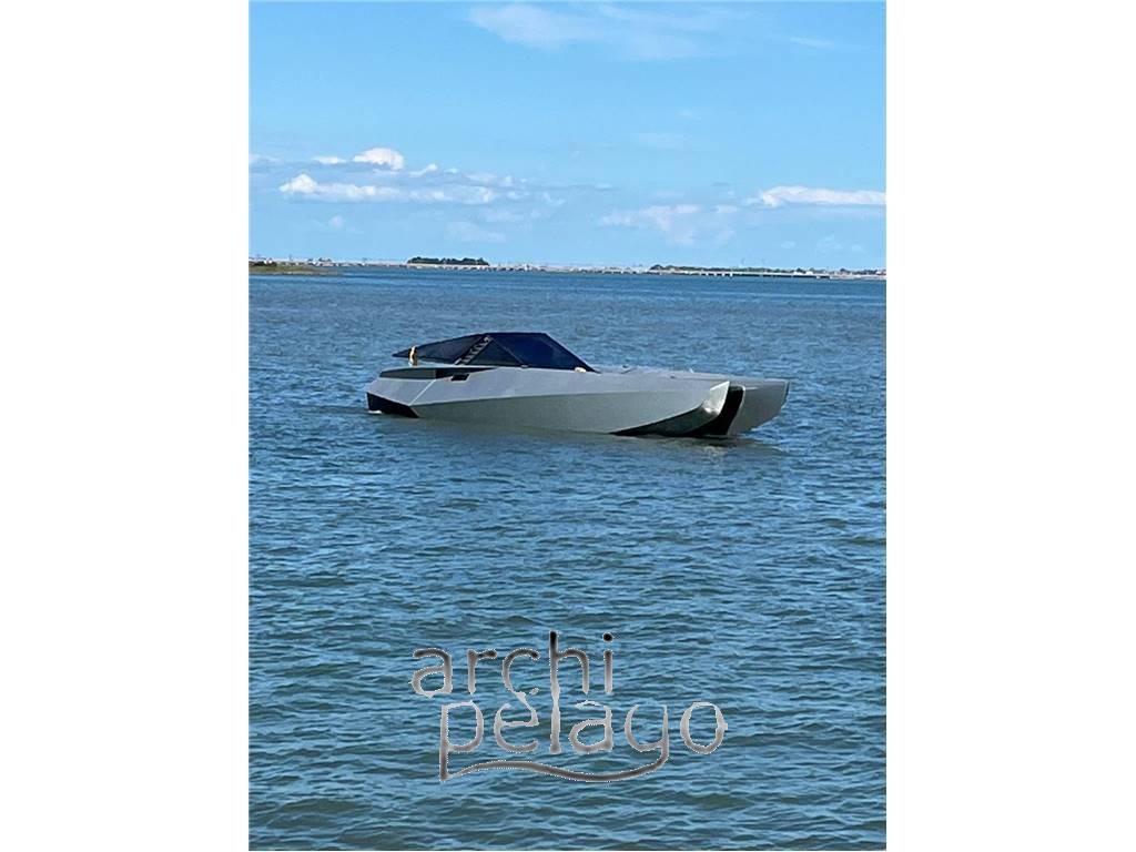 Catamarano a Motore super veloce, in fibra di carbonio con motorizzazione Trimax. Designer Fabio Buzzi .