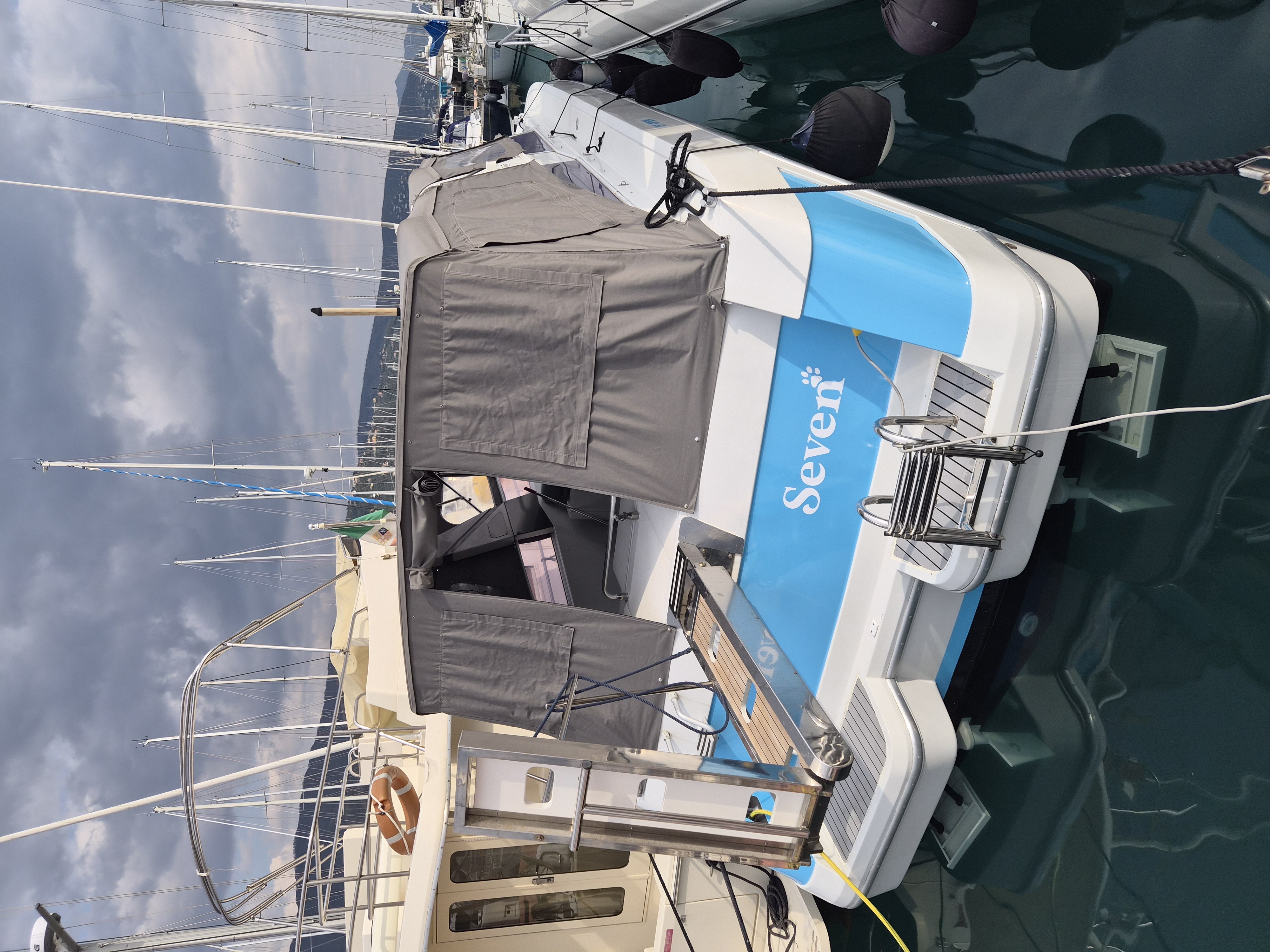 - MANUTENZIONE STRAORDINARIA 2025, revisione pompe di iniezione, scambiatori, scambiatori olio invertitori, revisione invertitori, sostituzione di tutte le prese a mare, nuova insonorizzazione sala macchine, nuove cuscinerie interne ed esterne presa acqua banchina, batterie nuove, tendalini nuovi, nuovo salpa ancora e molto altro.