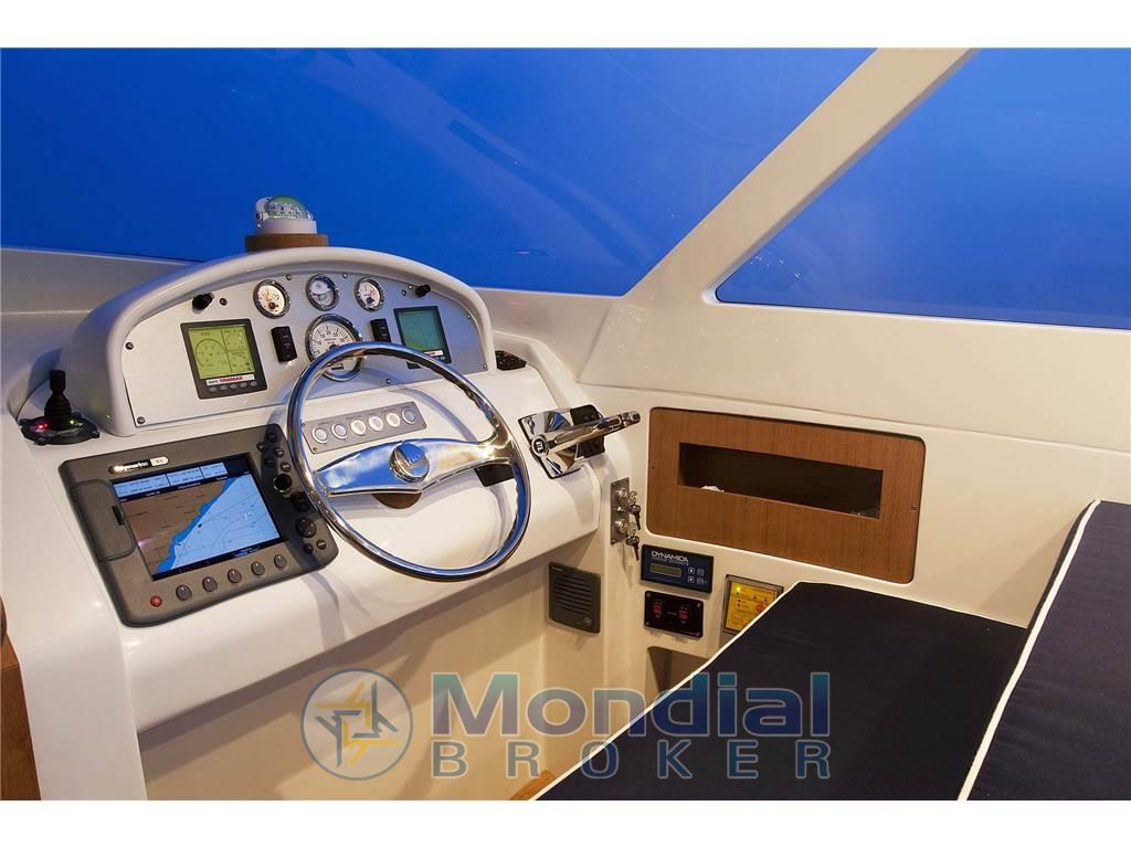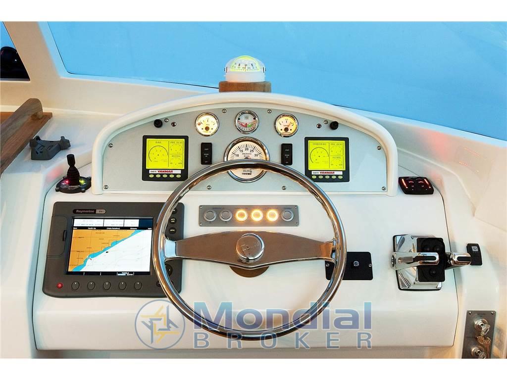 Bussola (Ritchie), Comando motori elettronico, Computer di bordo, Contamiglia, 2 Display (Yanmar), Joystick, Luci di navigazione, Pilota automatico, Plotter con antenna GPS, Quadro comandi, Radio VHF (Raymarine E240).