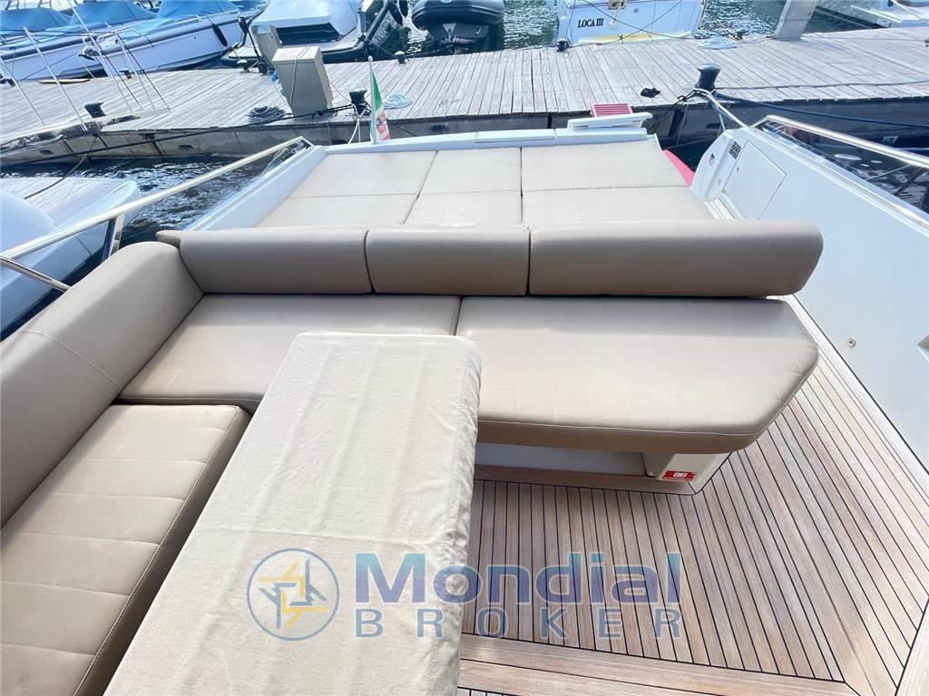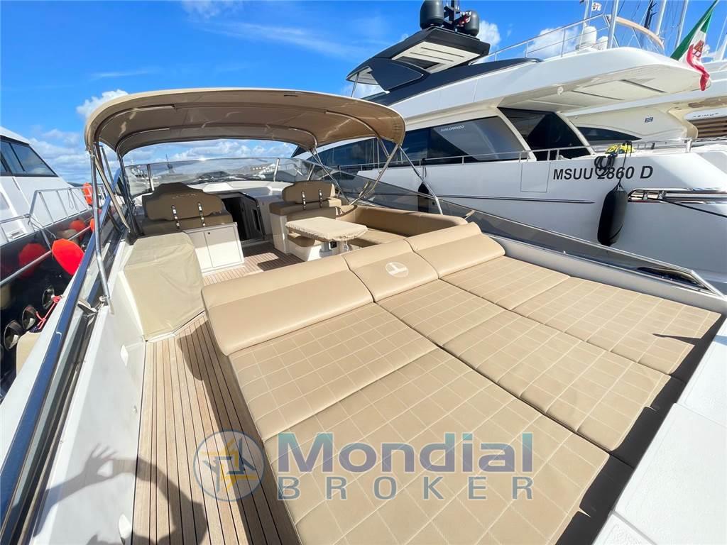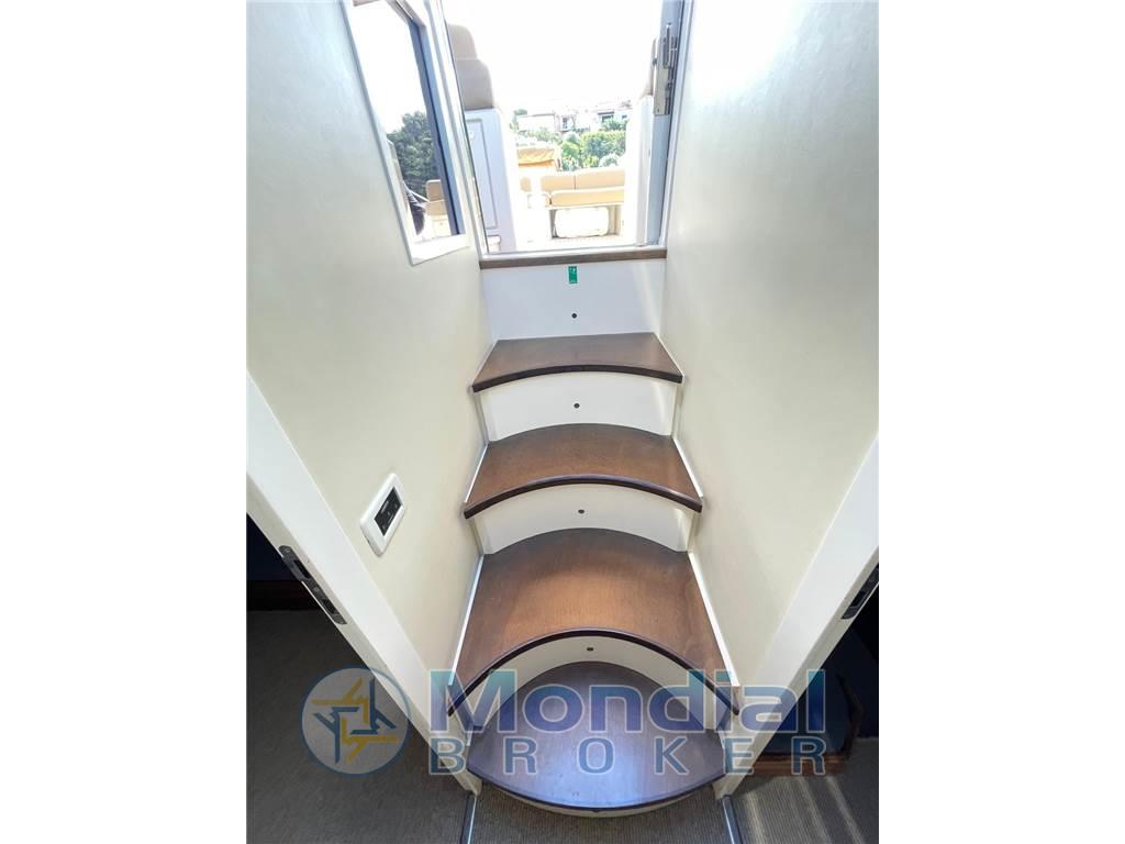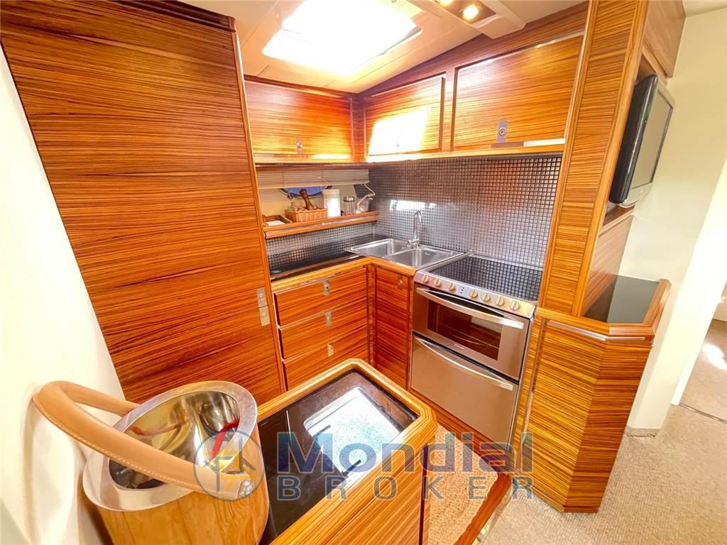 Ancora, Autoclave, Autogonfiabile, Caricabatterie, Colorazione speciale, Doccia esterna, Elica di prua, Flap idraulici, Impianto antincendio, Indicatori flaps, Lavaggio catena, Luci di cortesia, Passerella, Piattaforma, Pozzetto in teak, Presa 220V banchina, Salpa ancora elettrico, Scaletta da bagno, Tavolo in pozzetto, Winch tonneggio di poppa Cucina, Forno, Frigorifero esterno, Frigorifero interno, ICE Maker, Lavastoviglie, Microonde, Piastra in vetroceramica Dotazioni di sicurezza oltre 50 miglia Aria condizionata, Boiler, Inverter, Prese interne 12V, Prese interne 220V, Wc marino elettrico Altoparlanti, DVD, Home Theater, Impianto TV, Radio AM/FM, Stereo Angolo barra, Bussola, Comando motori elettronico, Contametri catena, Ecoscandaglio, Pilota automatico, Plotter, Radar Bimini, Cappottina, Copripozzetto, Cuscineria completa, Cuscineria di poppa, Cuscineria di prua, Tenda elettrica, Tendalino