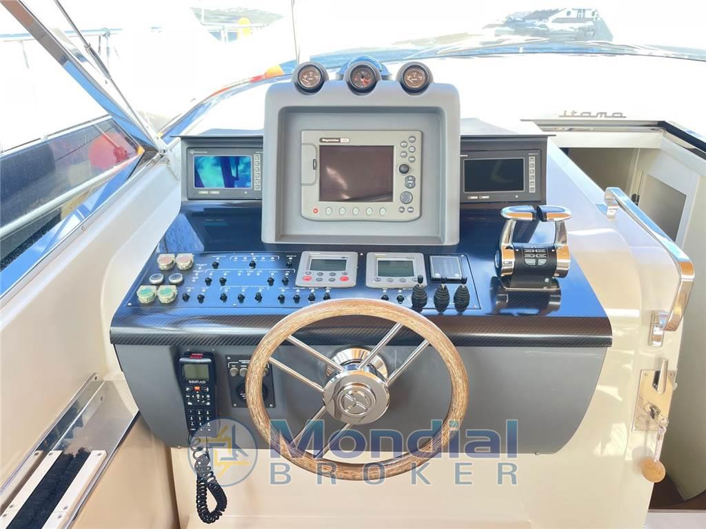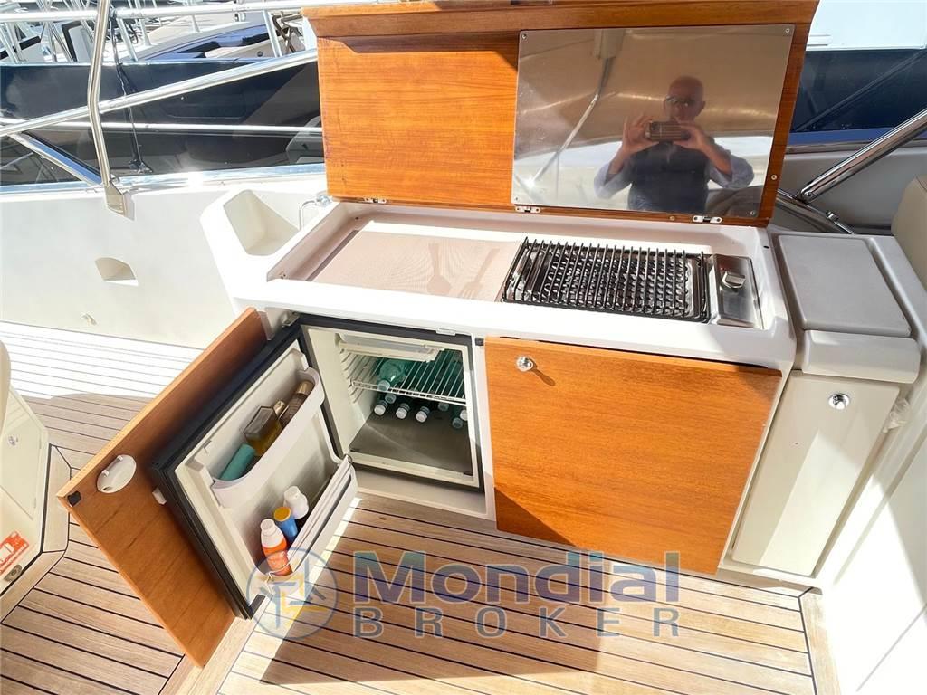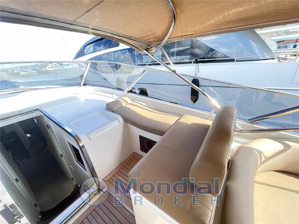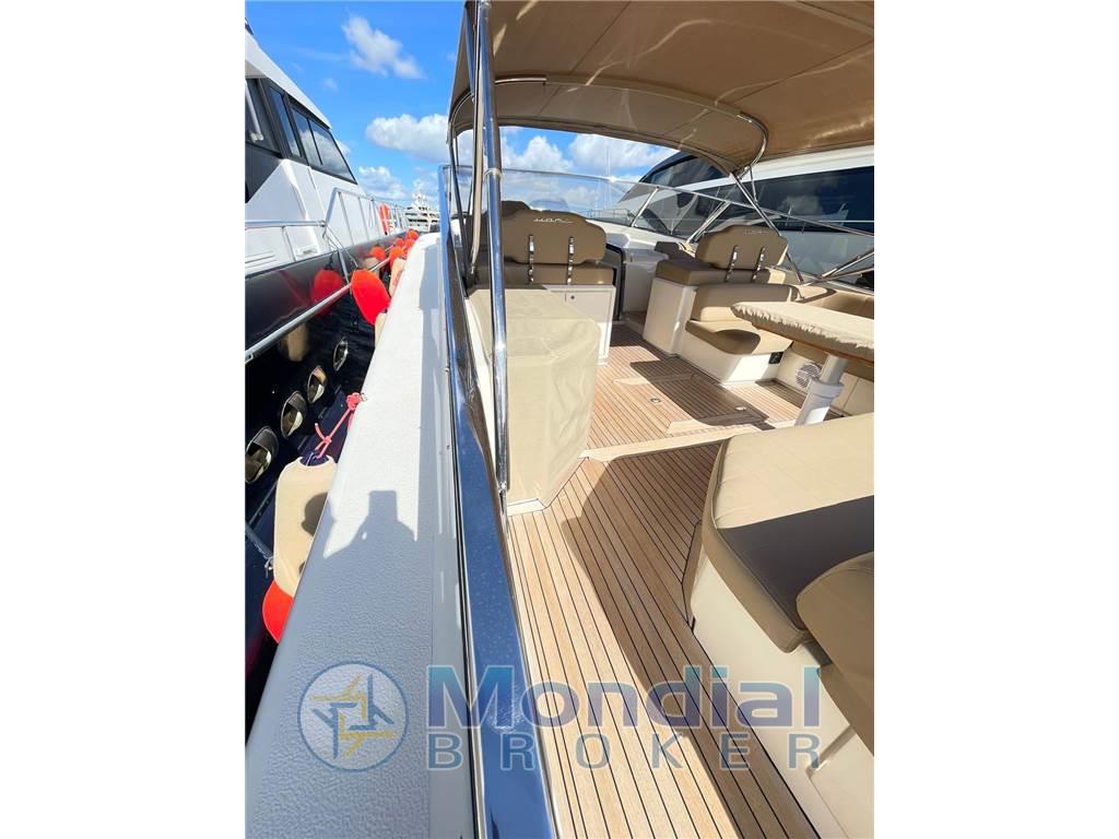 Ancora, Autoclave, Autogonfiabile, Caricabatterie, Colorazione speciale, Doccia esterna, Elica di prua, Flap idraulici, Impianto antincendio, Indicatori flaps, Lavaggio catena, Luci di cortesia, Passerella, Piattaforma, Pozzetto in teak, Presa 220V banchina, Salpa ancora elettrico, Scaletta da bagno, Tavolo in pozzetto, Winch tonneggio di poppa Cucina, Forno, Frigorifero esterno, Frigorifero interno, ICE Maker, Lavastoviglie, Microonde, Piastra in vetroceramica Dotazioni di sicurezza oltre 50 miglia Aria condizionata, Boiler, Inverter, Prese interne 12V, Prese interne 220V, Wc marino elettrico Altoparlanti, DVD, Home Theater, Impianto TV, Radio AM/FM, Stereo Angolo barra, Bussola, Comando motori elettronico, Contametri catena, Ecoscandaglio, Pilota automatico, Plotter, Radar Bimini, Cappottina, Copripozzetto, Cuscineria completa, Cuscineria di poppa, Cuscineria di prua, Tenda elettrica, Tendalino