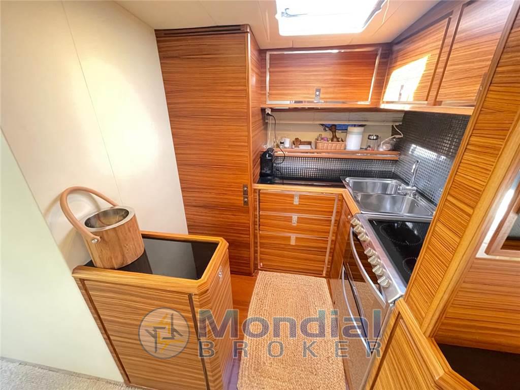 CABINA ARMATORIALE A PRUA CON BAGNO. CABINA MATRIMONIALE A POPPA LATO DX CON LETTO FRANCESE E BAGNO. CABINA CON DUE LETTI IN PIANO A POPPA LATO SX CON BAGNO. SUL LATO DESTRO AMPIA DINETTE CON DIVANO E TV 23" E DVD. SULLA SINISTRA,CUCINA COMPLETA CON QUATTRO FUOCHI, FORNO, LAVASTOVIGLIE, FRIGORIFERO, SURGELATORE. A POPPA CABINA MARINAIO.
