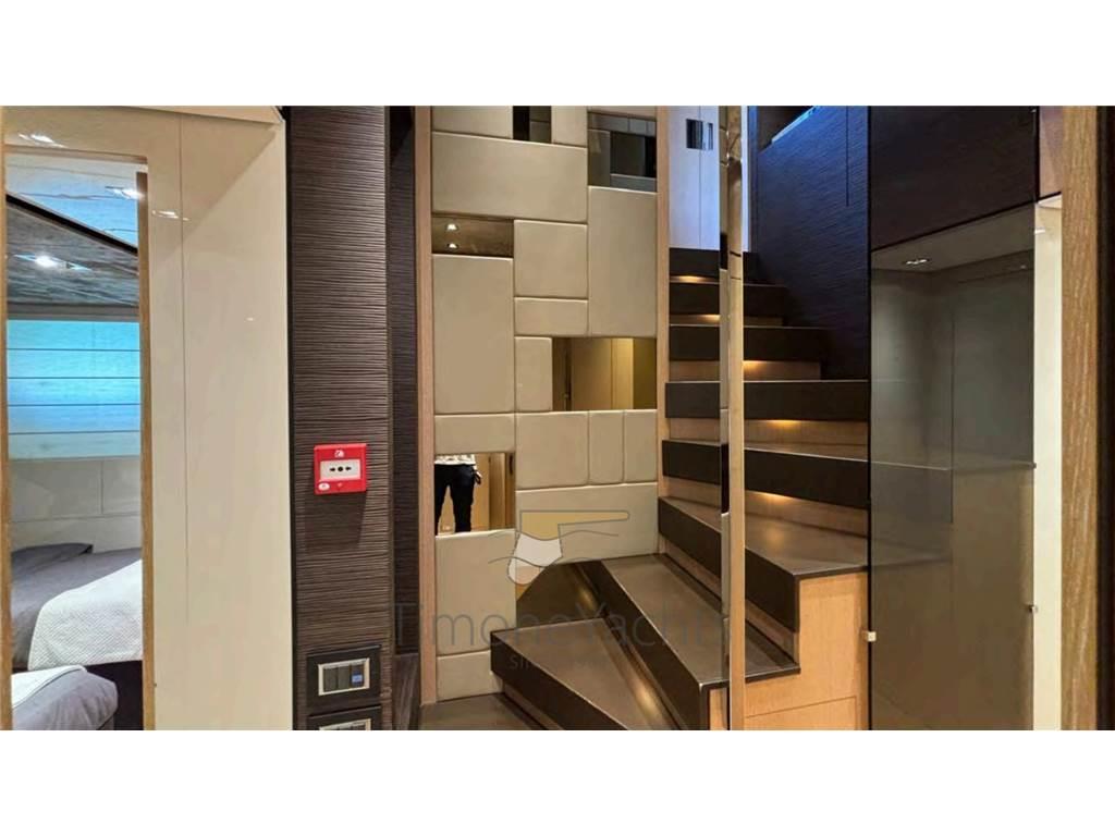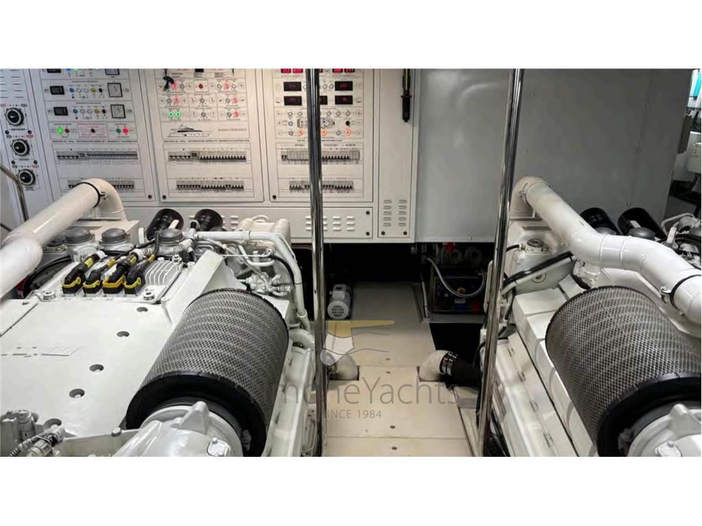 Allarme fumo/gas, Allarme motore, Allarme sentina, Alternatore, 2 Ancora, Camminamenti laterali in teak, Doccia esterna, Doppia timoneria, Elica di prua - bow thruster, Flap idraulici, Garage per tender, Hard top, Impianto antincendio, Indicatori Flaps, Lavaggio catena, 6 Luci subacquee, Passerella, Piattaforma, Pompa di sentina automatica, Ponte in teak, Porta ingresso, Porta laterale, Pozzetto Teak, Presa 220V banchina, Presa acqua banchina, Salpa Ancore Elettrico, Scaletta da bagno, Selle per Tender, Stabilizzatori (Zero Speed stabilizers), Tavolo pozzetto, Tender, Tromba, Winch tonneggio di poppa, Winch tonneggio di prua.