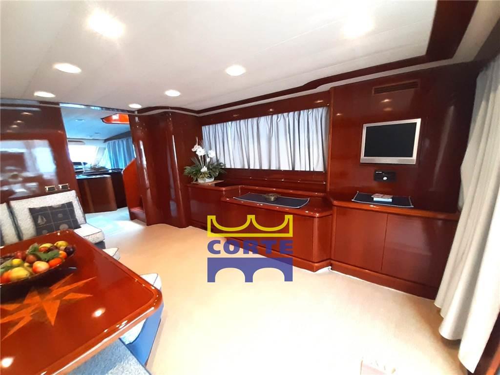 Altoparlanti, Antenna Satellitare TV, Bimini (top sul flt), Boiler, Clima reversibile (Climma 54000 btu), Congelatore, Copripozzetto, Cucina, Cuscineria completa, Decoder satellite, Dissalatore (2018), Forno, Frigorifero esterno, Frigorifero interno, Impianto acque nere, Impianto TV, Lavasciuga, Lavastoviglie, Piastra in vetroceramica, Prese interne 12v, Prese interne 220v, Stereo, 2 Telecamera (impianto tvcc pozzetto e vano motori), Teli copri finestra, Telo copriconsolle, Tendalino (estivi pozzetto), TV (LCD in ogni ambiente), WC marino elettrico, Compressore