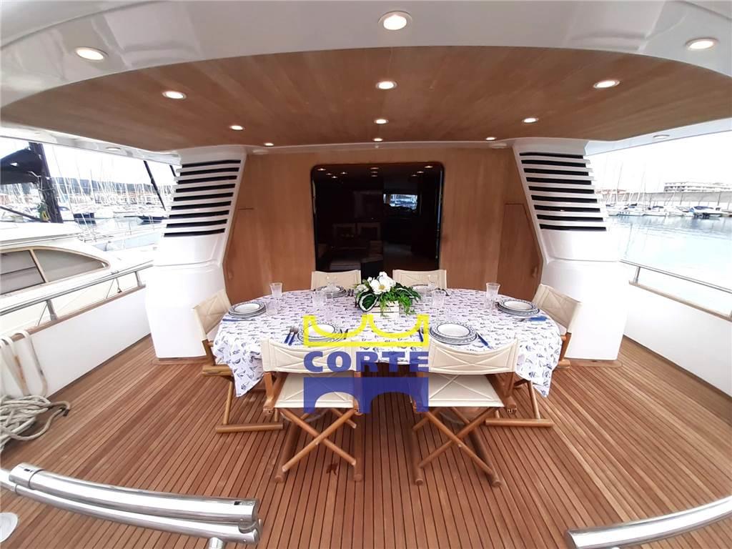 Allarme motore, Allarme sentina, Ancora, Angolo barra, Antenna radar, Autoclave (doppia), Batterie (motori 2021), Bussola, Camminamenti laterali in teak, Caricabatterie, Comando motori elettronico, Contamiglia, Display, Doccia esterna, Doppia timoneria, Ecoscandaglio, Elica di poppa - stern thruster, Elica di prua - bow thruster, Flap idraulici, GPS, Gruette per tender su fly, Impianto antincendio, Luci di cortesia, Passerella (idraulica), Piattaforma (poppa a movimentazione up down), Pilota automatico, Pompa di sentina automatica, Pompa di sentina elettrica, Porta ingresso, 2 Porta laterale, Pozzetto Teak, Presa 220V banchina, Presa acqua banchina, Radar, Radio VHF, Ripetitore strumentazione, Rollbar, Salpa Ancore Elettrico, Scaletta da bagno, Tavolo pozzetto, Tromba, 2 Winch tonneggio di poppa