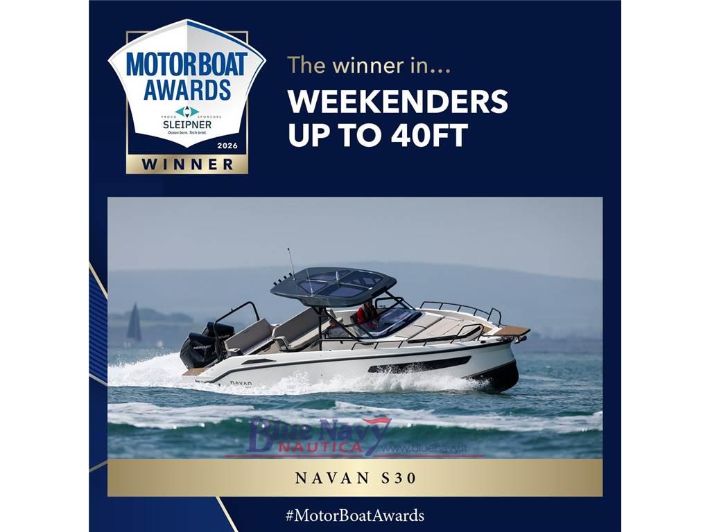 NAVAN S30 - VINCITORE del MOTOR BOAT AWARDS 2026 !!!! Barca che costituisce l’apice della nautica sportiva abbinata alle nostre funzionalità di maggior lusso. Questo modello Walkaround con console centrale, che può ospitare fino a 12 passeggeri, trasuda affidabilità da tutte le parti integrando i nostri quattro pilastri: sicurezza, comfort, design innovativo e versatilità. Che tu stia navigando nelle acque locali oppure avventurandoti da un porto all'altro, avrai sempre ciò che desideri per viaggi di lusso e in sicurezza.