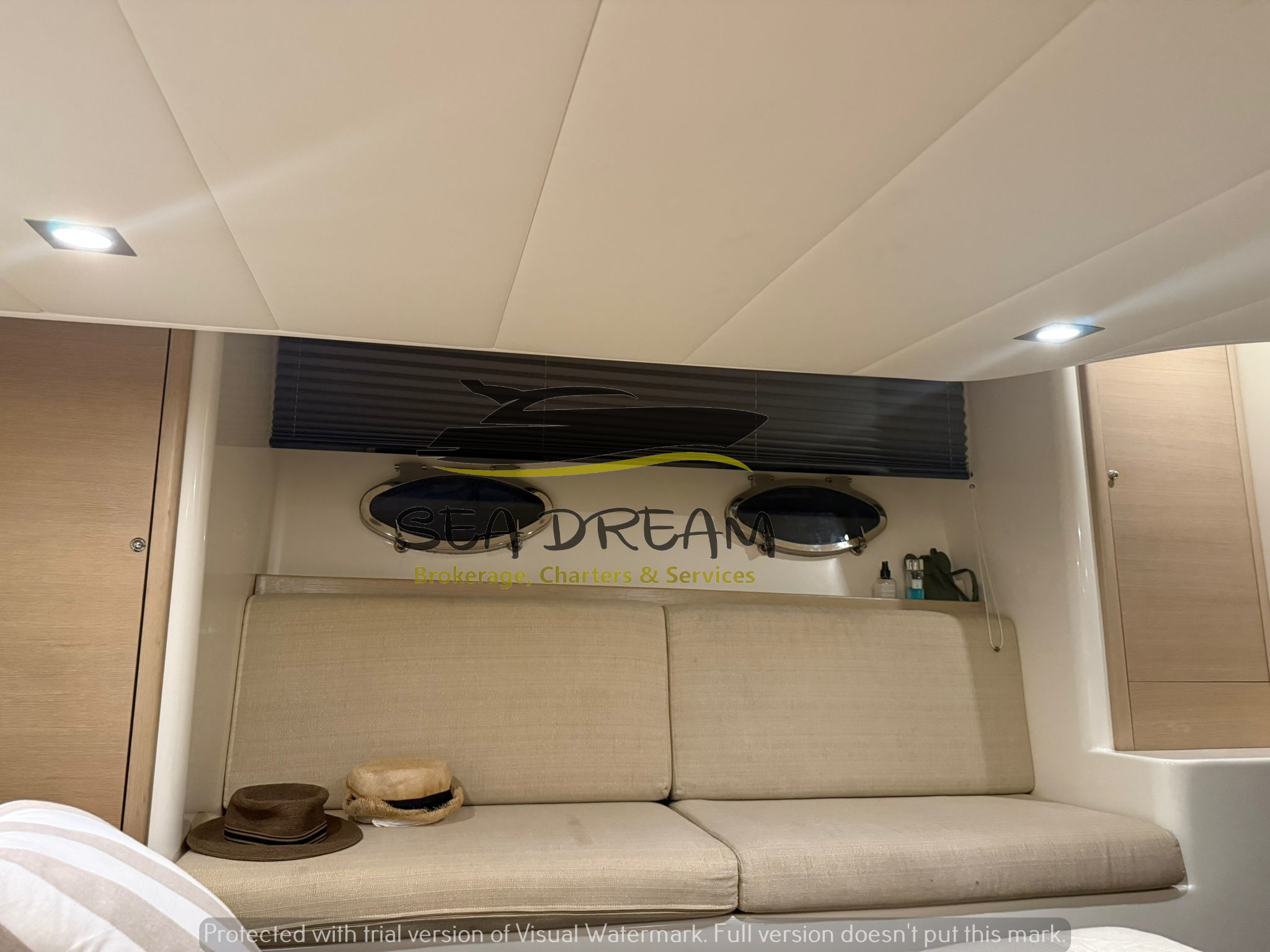 Esternamente presenta un ampio prendisole a poppa e a prua, nel pozzetto troviamo un divano a C molto comodo e spazioso.