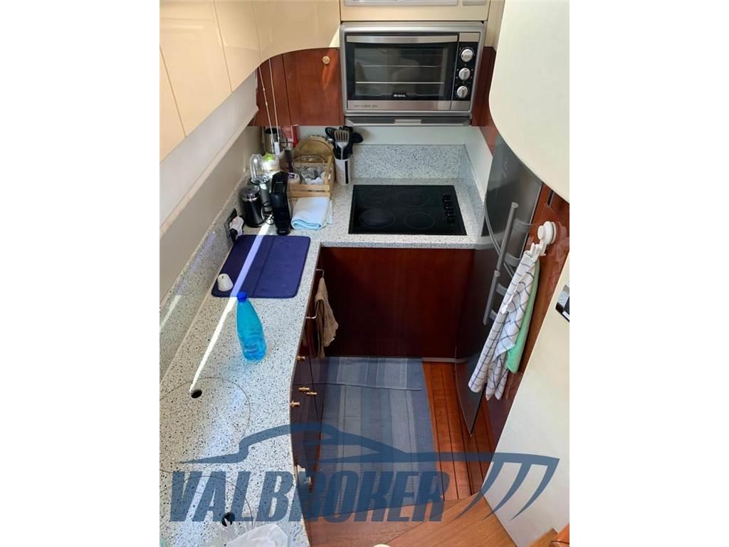 Cassaforte, Congelatore, Cuscineria completa (2020, grigia), Cuscineria di prua, Dissalatore, Forno, Frigorifero esterno, 2 Frigorifero interno, ICE Maker, Impianto TV, Lavastoviglie (Whirpool), Lavatrice, Pavimento interno in legno (nuovo effettuato da falegnameria specializzata), Piastra in vetroceramica (4 fuochi), Stereo (Bose), Tendalino, TV, scalini per raggiungere il fly in teak, divani interni in nappa bianca nuovi di altissima qualità compresa cuscineria del posto guida, copri tavolo pozzetto,