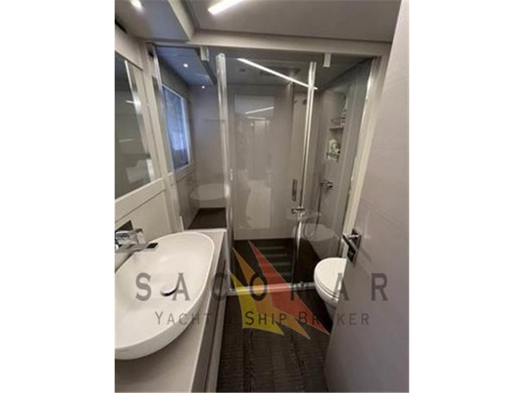 AIS, Allarme motore, Ancora, Angolo barra, Antenna radar, Apertura Vano Motore Elettrica, Autoclave, Autogonfiabile, Batterie, Bitte Abbattibili, Bussola, Camminamenti laterali in teak, Caricabatterie, Colorazione speciale, Comando motori elettronico, Computer di bordo, Contametri catena, Contamiglia, Display, Doccia esterna, DSC vhf, Ecoscandaglio, Elica di poppa - stern thruster, Elica di prua - bow thruster, Fari fissi a poppa, Faro orientabile, Flap idraulici, Garage per tender, GPS, Hard top, Impianto antincendio, Jet Boat, Lavaggio catena, Lavandino nel Pozzetto, Luci di cortesia, Luci subacquee, Passerella, Piattaforma, Pompa di sentina automatica, Pompa di sentina elettrica, Pompa di sentina manuale, Porta ingresso, Pozzetto Teak, Presa 220V banchina, Presa acqua banchina, Radio VHF, Salpa Ancore Elettrico, Scaletta da bagno, Sedile Copilota, Sistema di posizionamento dinamico, Stabilizzatori, Tavolo pozzetto, Tavolo Salone Abbattibile, Tender, Tientibene con cancelletti, Tromba, Winch tonneggio di poppa, Winch tonneggio di prua