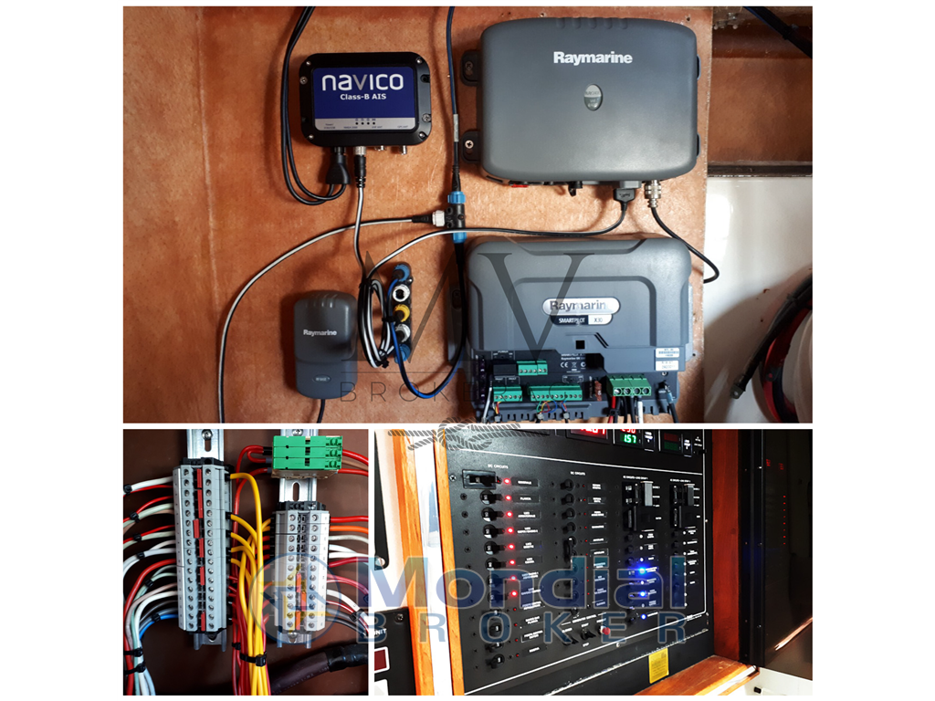 Doppio chartplotter Raymarine serie E - Raymarine Network switch seatalk/stng/nmea 2000 converter - Geonav Nmea0183 - Raymarine ds600x - Radar Raymarine - AIS navico class B tx/rx - VHF Raymarine Ray240E - VHF Icom portatile - Autopilota Raymarine Smartpilot X30 - Display Raymarine P70R - Radiocomando autopilota Raymarine S1000 - Videocamera posteriore