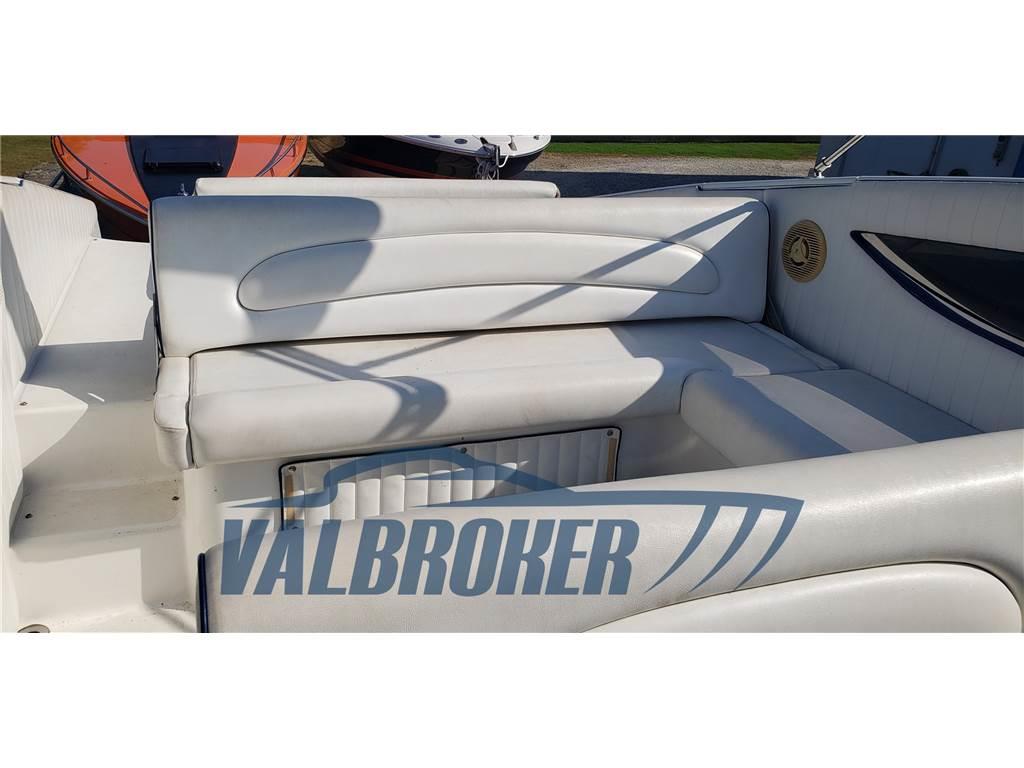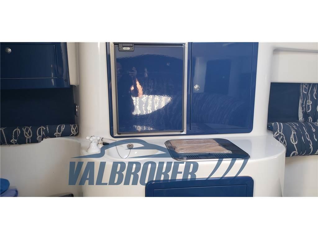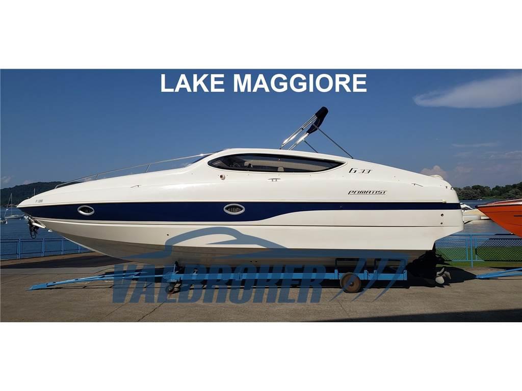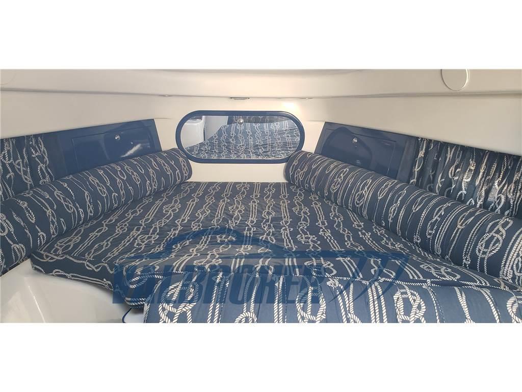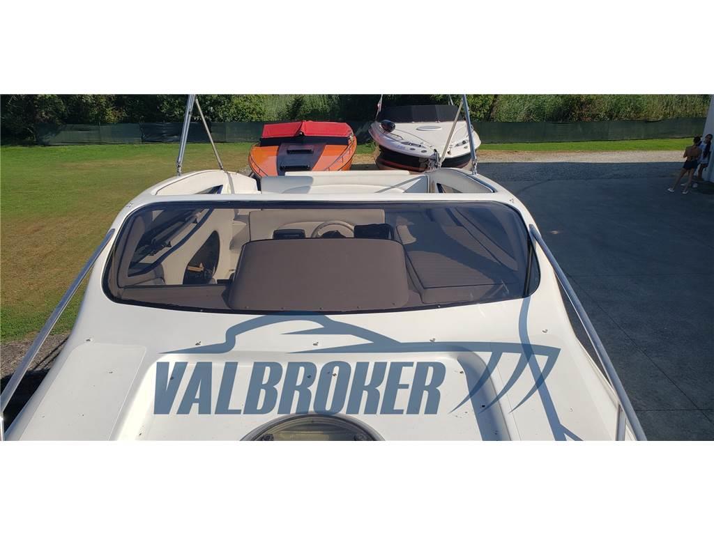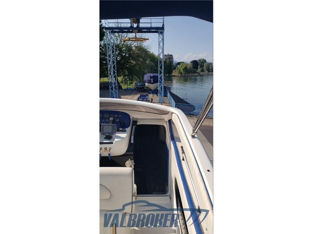 Comodo motoscafo sportivo del cantiere sul Lago di Como con guida centrale che ha sempre navigato in acqua dolce, dal 2007 sul Lago Maggiore. 2x 7.4 mpi Mercruiser V8 benzina 300 HP, trasmissioni BRAVO. Lunghezza omologazione da documento: 7,56 m.