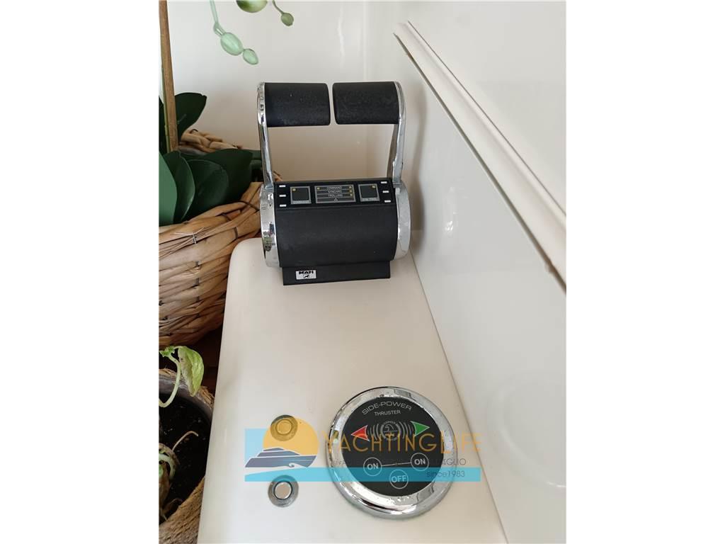 Allarme motore, Allarme sentina, Ancora, Angolo barra, Antenna radar, 2 Asse di rispetto, 2 Autoclave (nuove), 2 Autogonfiabile (2x8 persone), Batterie, Camminamenti laterali in teak, 2 Caricabatterie, Comando motori elettronico, Contametri catena, Contamiglia, Doccia esterna, Doppia timoneria, DSC vhf, Ecoscandaglio, Elica di prua - bow thruster, 2 Elica di rispetto, Flap idraulici, GPS (nuovo 12 pollici), Gruette per tender su fly, Impianto antincendio, Indicatori Flaps, Lavaggio catena, Luci di cortesia, Passerella (Mor Saverio), Piattaforma, Pilota automatico, Pompa di sentina automatica, Pompa di sentina manuale, Porta ingresso, Porta laterale, Pozzetto Teak, Presa 220V banchina, Radar, 2 Raddrizzatore, Radio VHF, Rollbar, Salpa Ancore Elettrico, Scaletta da bagno, Tavolo pozzetto, Tromba, 2 Winch tonneggio di poppa