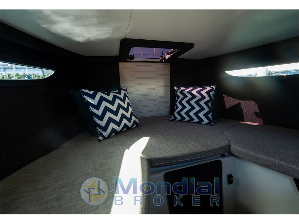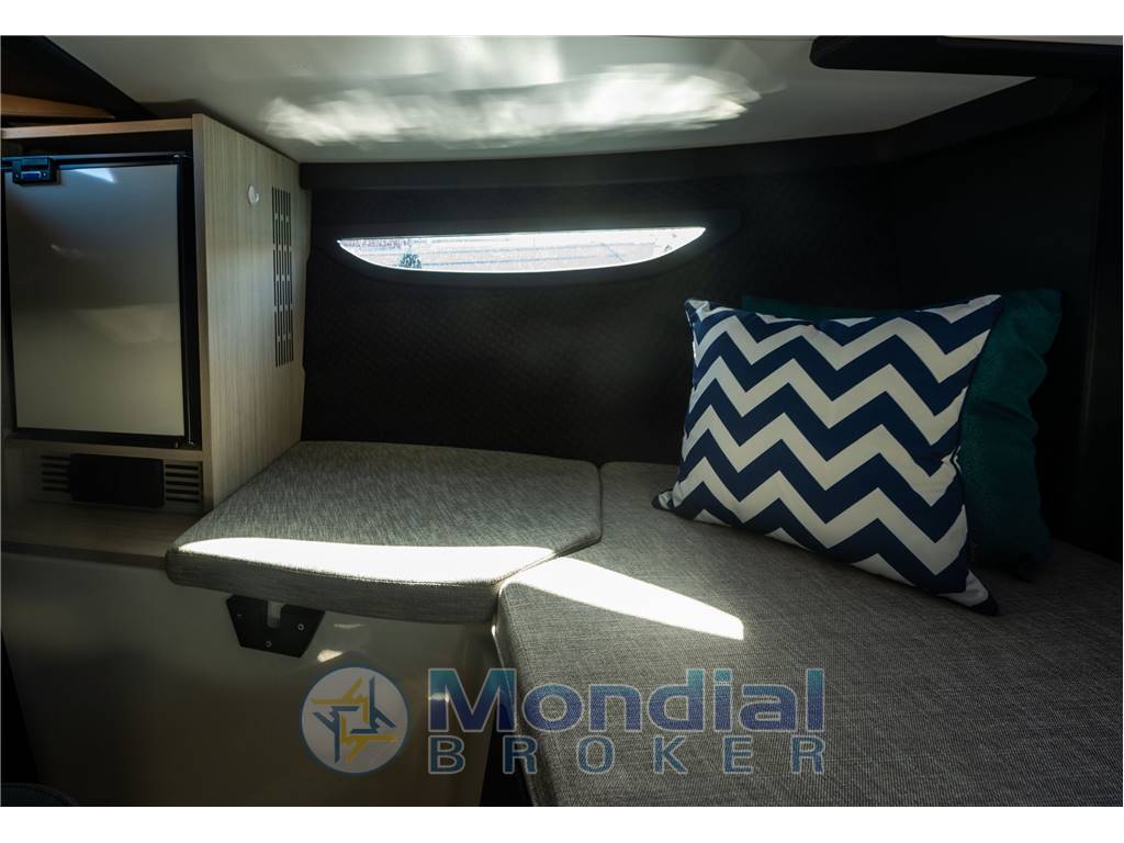 Questo modello è particolarmente tradizionale, come dimostra il ponte di prua rivestito in teak, che richiama l'eredità classica delle barche in legno e che fa da contrappunto visivo alla plancetta di poppa rivestita in teak. E ovviamente non mancano soluzioni innovative e funzionali.