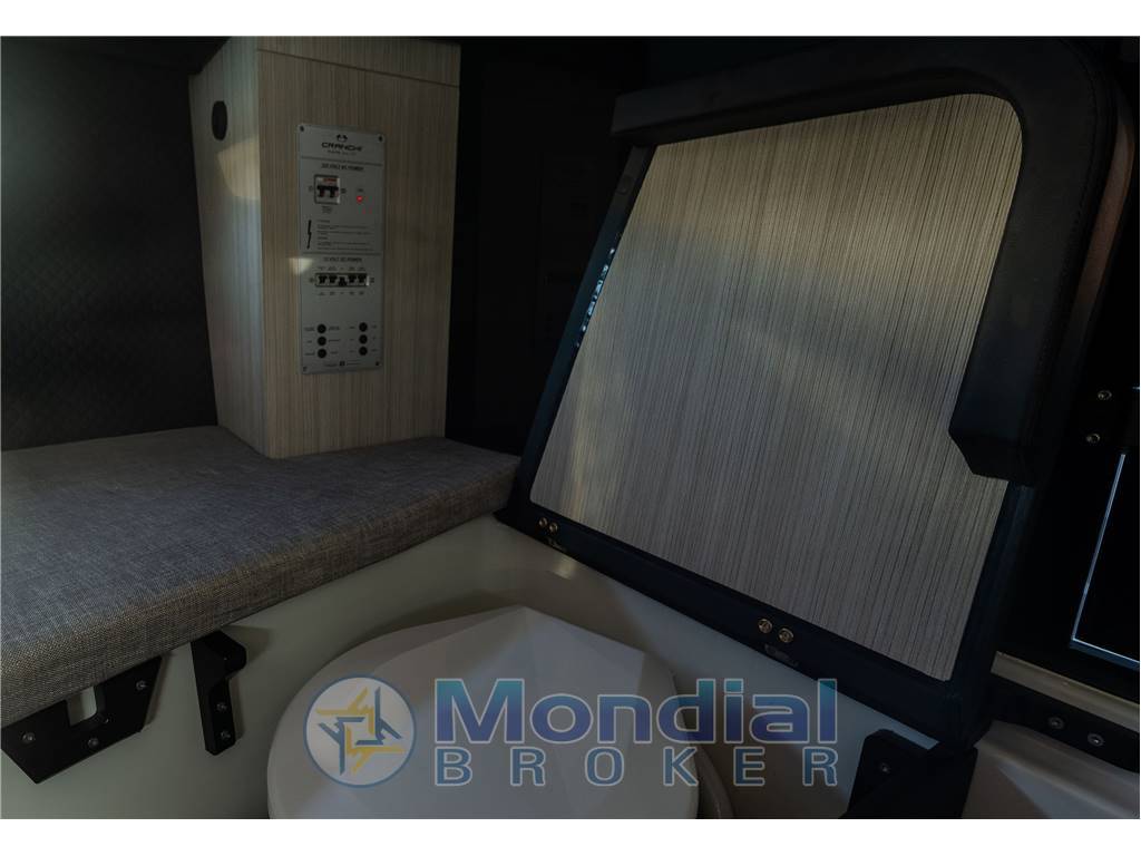 "BOBO 8" ha una piccola ma lussuosa cabina per i pernottamenti occasionali o per ripararsi in caso di pioggia e uno scompartimento bagno per un maggiore comfort.