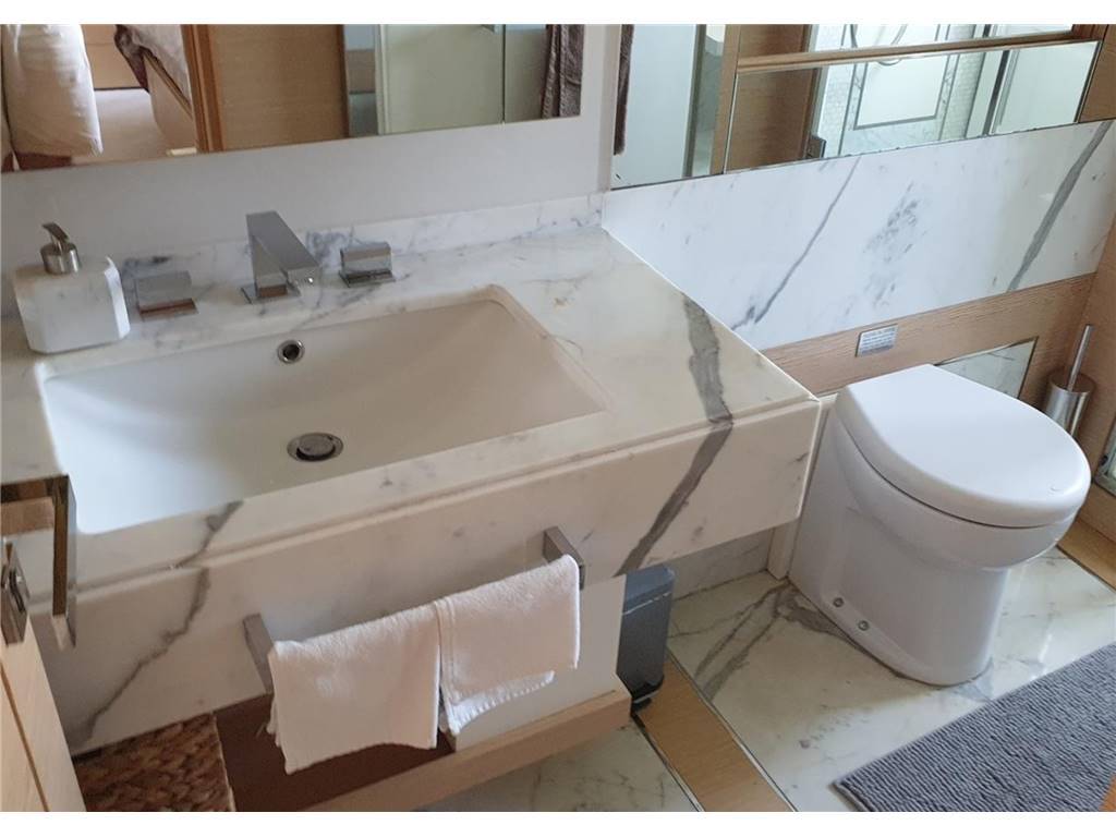 La cabina armatoriale di 25 mq si caratterizza primariamente per l’ampiezza delle finestrature e del bagno, il quale è provvisto di uno specchio a parete e di una vasca. La suite si avvale della RGB White Lighting System LED technology la quale consente di ricreare differenti tonalità di luce offrendo momenti di vero relax.