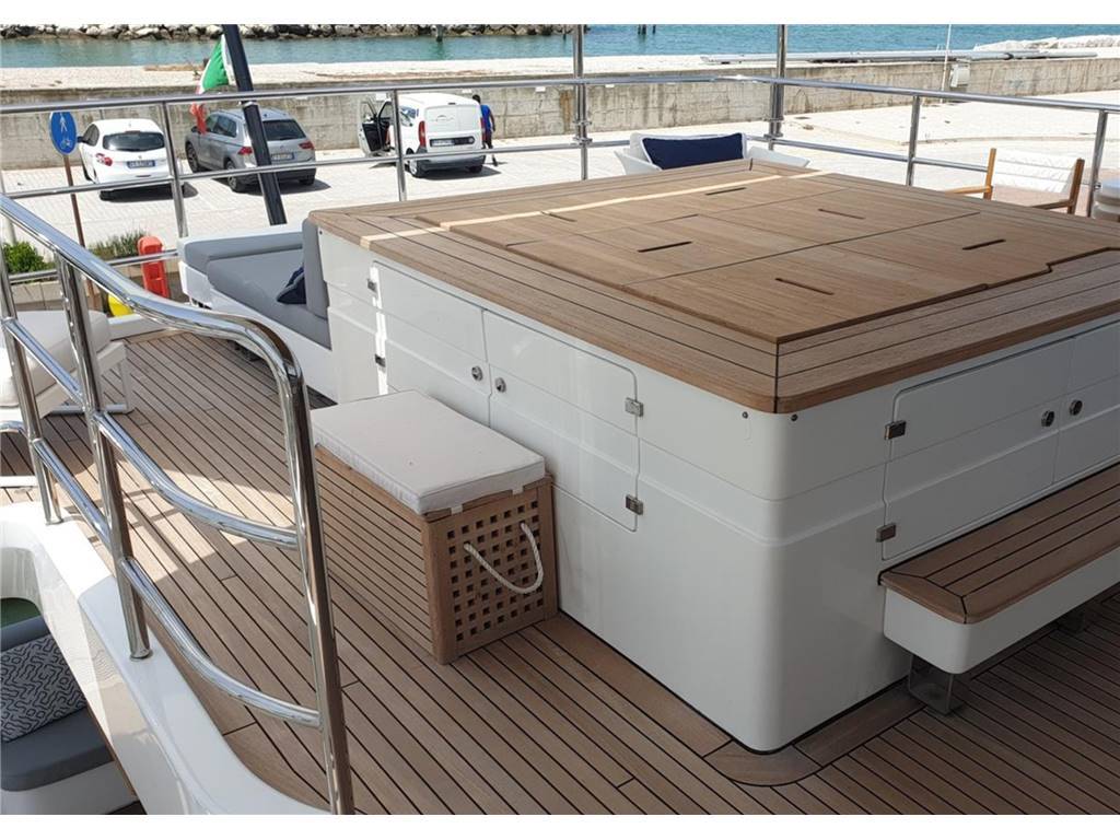 AIS, Allarme fumo/gas, Allarme motore, Allarme sentina, 2 Ancora, Angolo barra, Antenna radar, Autoclave, 2 Autogonfiabile, Batterie, Bocche di Lupa, Bussola, Camminamenti laterali in teak, Caricabatterie, Comando motori elettronico, Computer di bordo, Contametri catena, Doccia esterna, Doppia timoneria, Ecoscandaglio, Elica di poppa - stern thruster, Elica di prua - bow thruster, Garage per tender, Hard top, Impianto antincendio, Impianto Aria Compressa, Luci di cortesia, Luci subacquee, Passerella, Pilota automatico, Plotter, Pompa di sentina automatica, Pompa di sentina elettrica, Pompa di sentina manuale, Porta ingresso, Porta laterale, Pozzetto Teak, Radar, Radio VHF, Salpa Ancore Elettrico, Scala reale, Stabilizzatori, Tavolo pozzetto, Tientibene con cancelletti, Tromba, Winch tonneggio di poppa