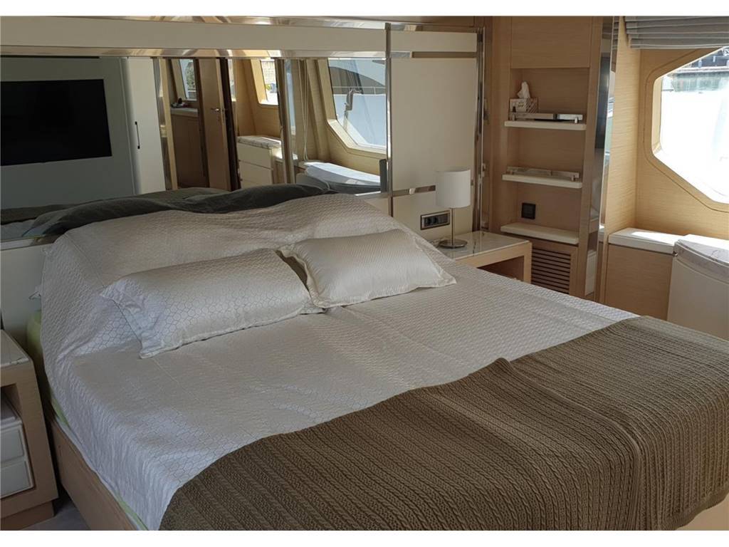 Altoparlanti, Antenna Satellitare TV, Aria condizionata, Asciugatrice, Barometro, Bimini, Binocolo, Boetta fumogena, Boiler, Carte nautiche, Cassaforte, Cinture di salvataggio, Clima reversibile, Controllo Domotica, Cucina, Cuscineria completa, Cuscineria di poppa, Cuscineria fly, Cuscineria Pozzetto, Decoder satellite, Dissalatore, Dotazioni di sicurezza oltre 50 miglia, E.P.I.R.B., Forno, Frigorifero esterno, Frigorifero interno, Giubbetti di salvataggio, Impianto acque nere, Lavastoviglie, Lavatrice, Macchina caffè, Meccanismo saliscendi per TV, Microonde, Oscuranti, Pavimento interno in legno, Piastra elettrica, Prese interne 220v, Razzi a paracadute a luce rossa, Salvagente anulare con cima munita di boetta luminosa, Serbatoio Acque Nere, Telecamera, Telo coprisedile, Tenda Elettrica, TV, WC marino elettrico, Winecooler, Zattera di salvataggio