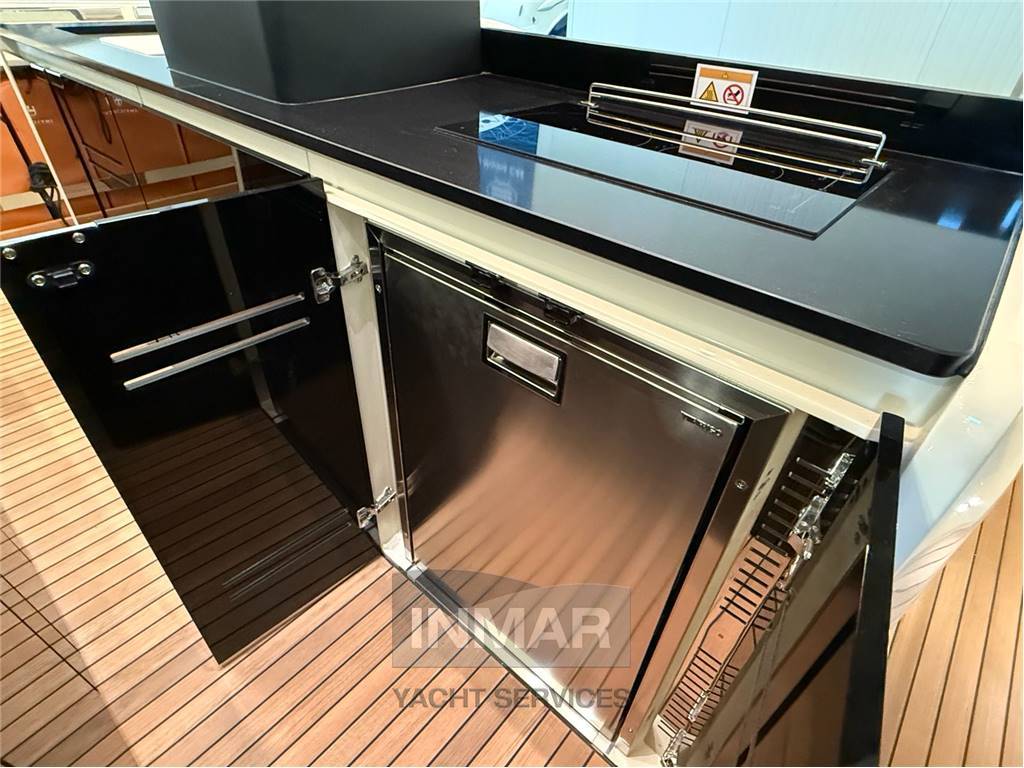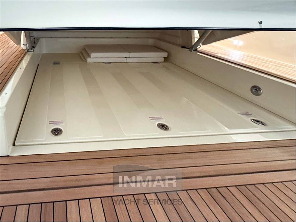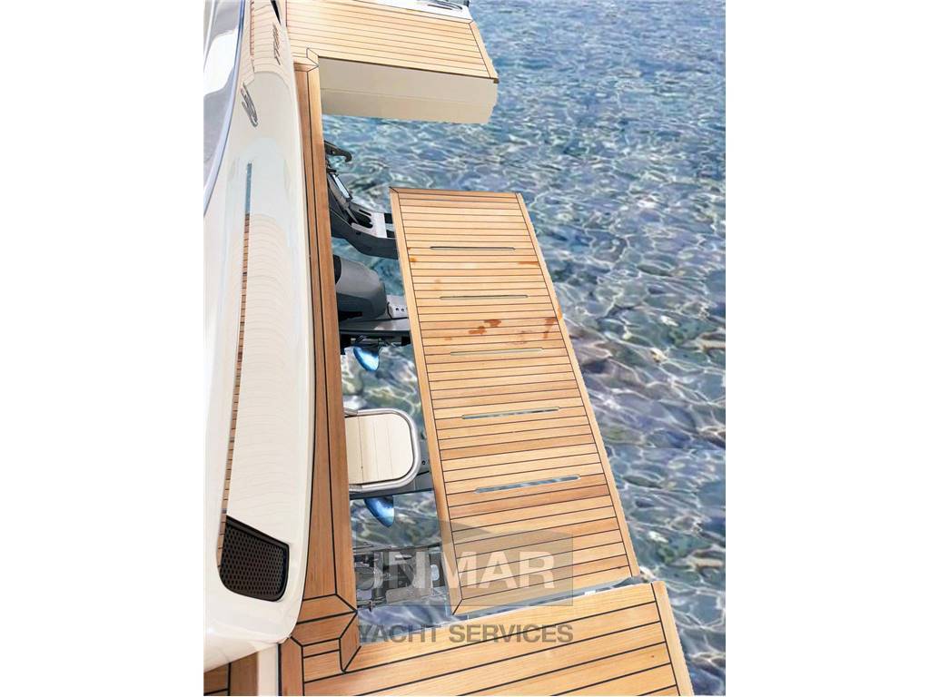 ATTREZZATURA DI COPERTA: Passerella idraulica a scomparsa - Luci subacquee multicolor - Telo Harem estensione ombreggiante poppa con pali in carbonio - Passerella idraulica - Scala bagno - Teak in pozzetto e in plancetta - Materassini prendisole - Lavaggio catena - Nr 1 verricello ancora - Faro orientabile Striker nero con telecomando in consolle - RGB Luci di cortesia hard-top e pozzetto - Plancetta di poppa affondabile