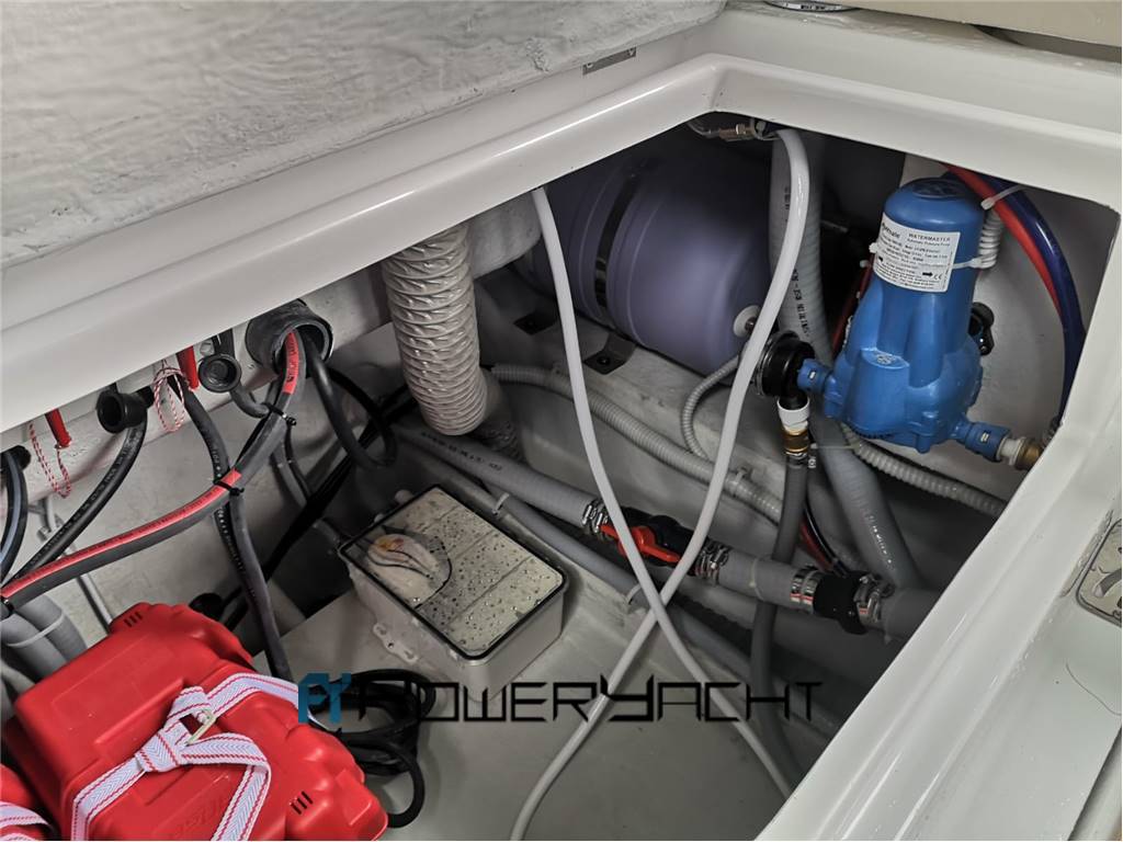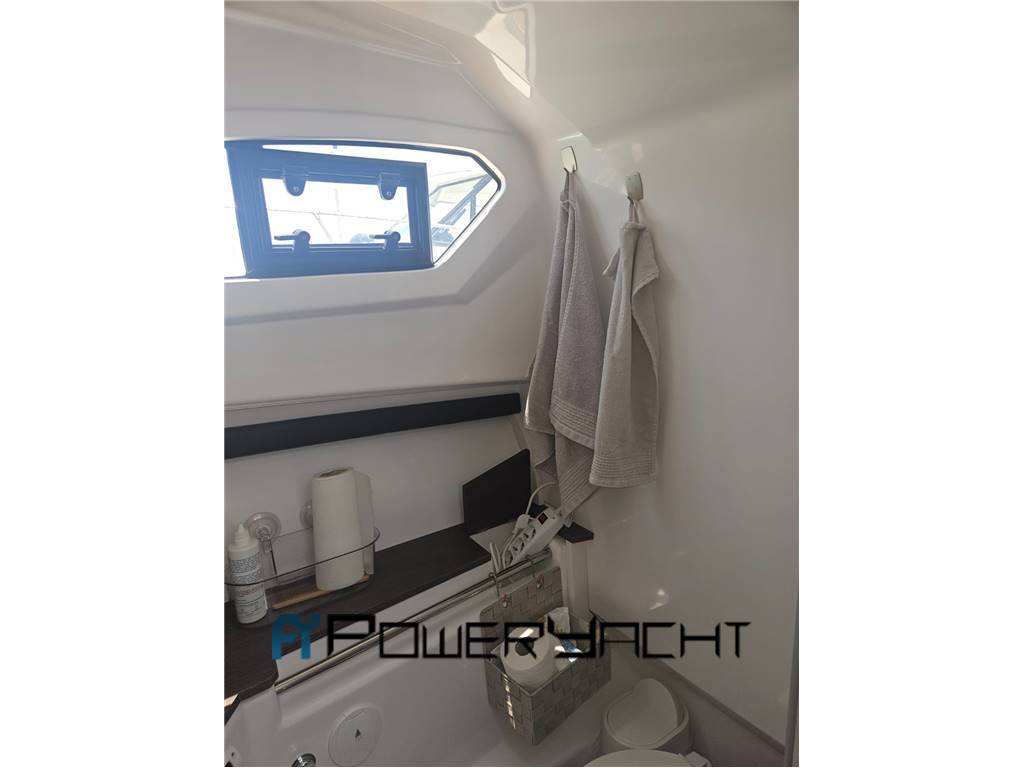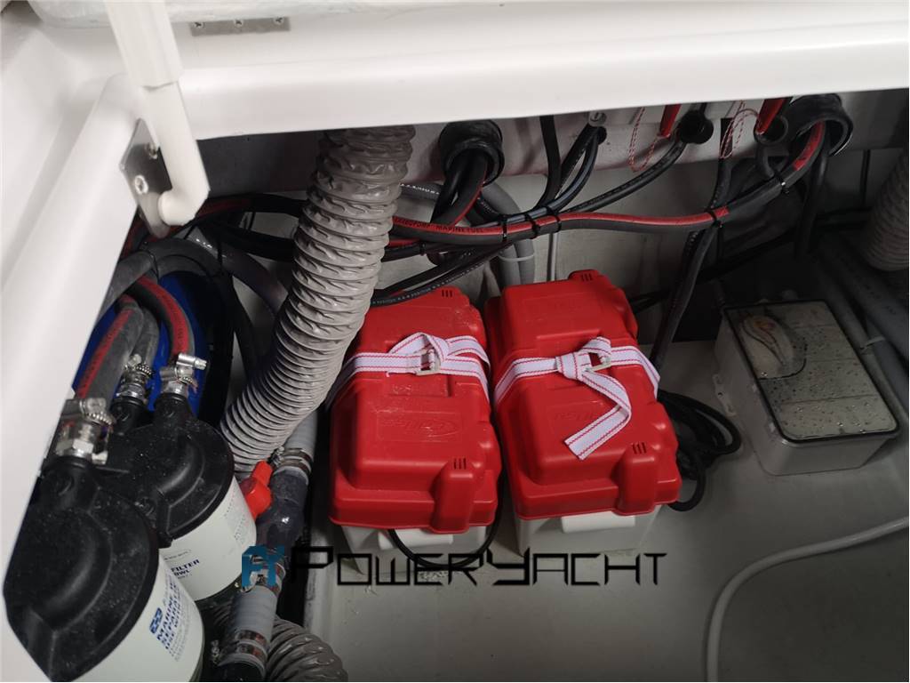 Salpa-ancora elettrico, ancora Bruce con catena, cuscini prendisole prua, cuscini sedute esterne, tendalino, estensione tendalino perforato, copertura console, coperture sedie divano esterno e prendisole prua, pagliolo in flexi teak, coperture motore, scala bagno