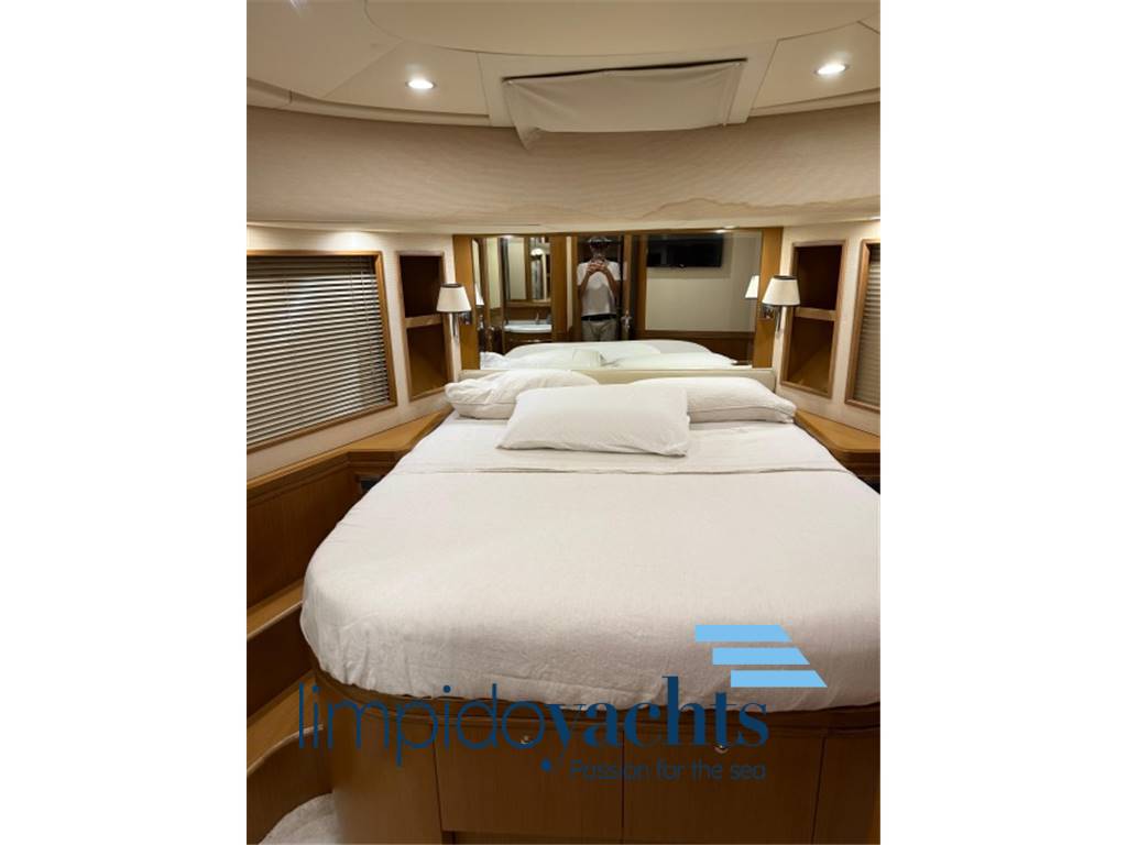 un flybridge allungato, motori potenziati, aria condizionata, generatore e strumentazione.