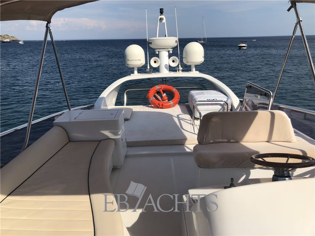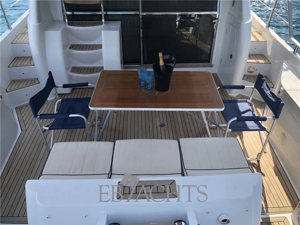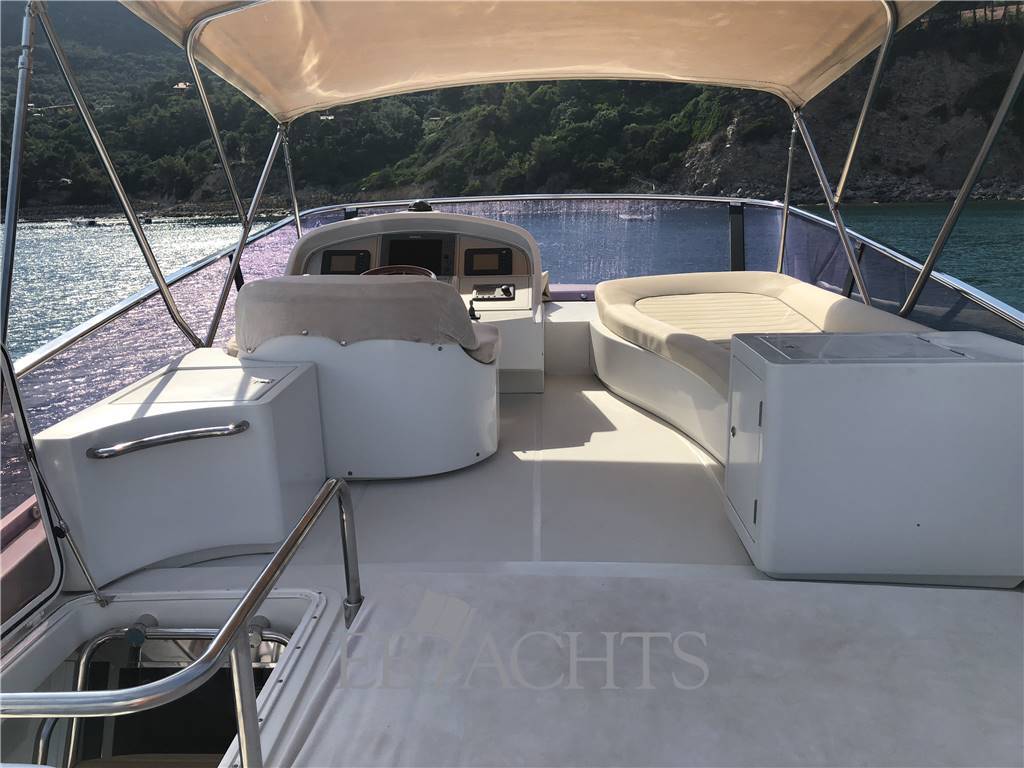 Flybridge: timoneria completa, ampio prendisole, sedile pilota, mobiletto bar con frigorifero e divano a "U".