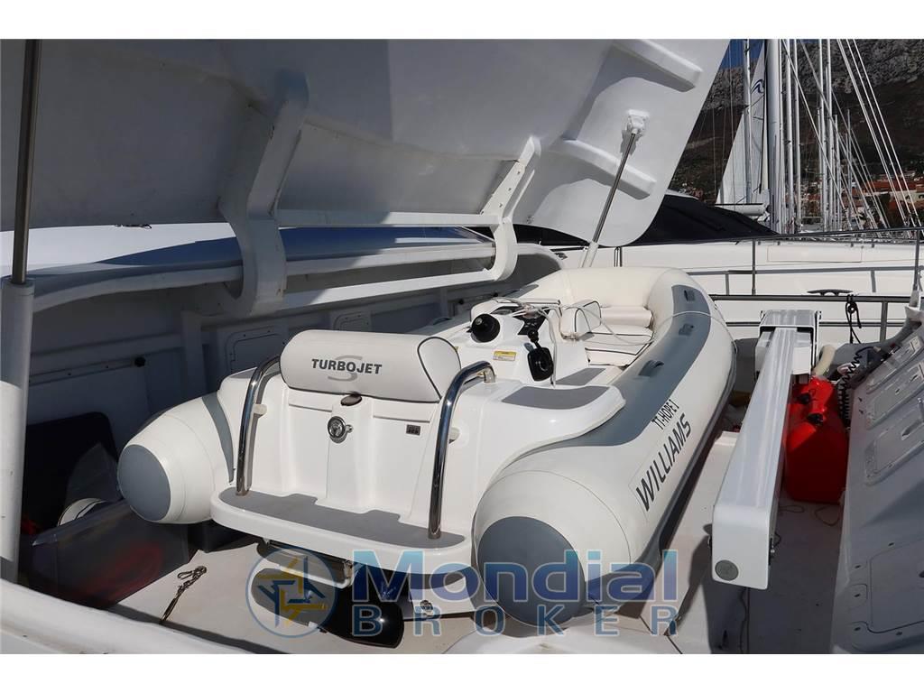 Camminamenti laterali in teak, Doccia esterna, Elica di poppa - stern thruster (hydraulic), Elica di prua - bow thruster (hydraulic), Flap idraulici, Passerella (hydraulic, Pincraft), Porta laterale, Pozzetto Teak, Salpa Ancore Elettrico (3 kW), Scaletta da bagno (hydraulic), Tavolo pozzetto, Tender (Williams 325, 2019, 97w/h).