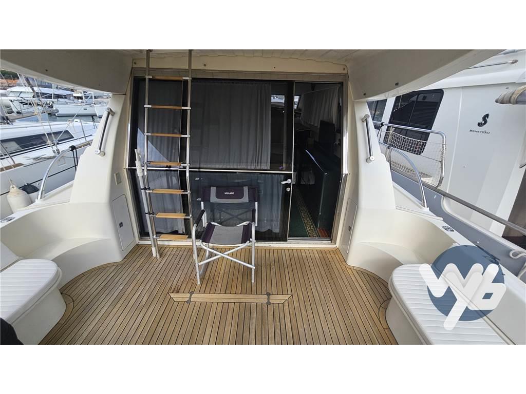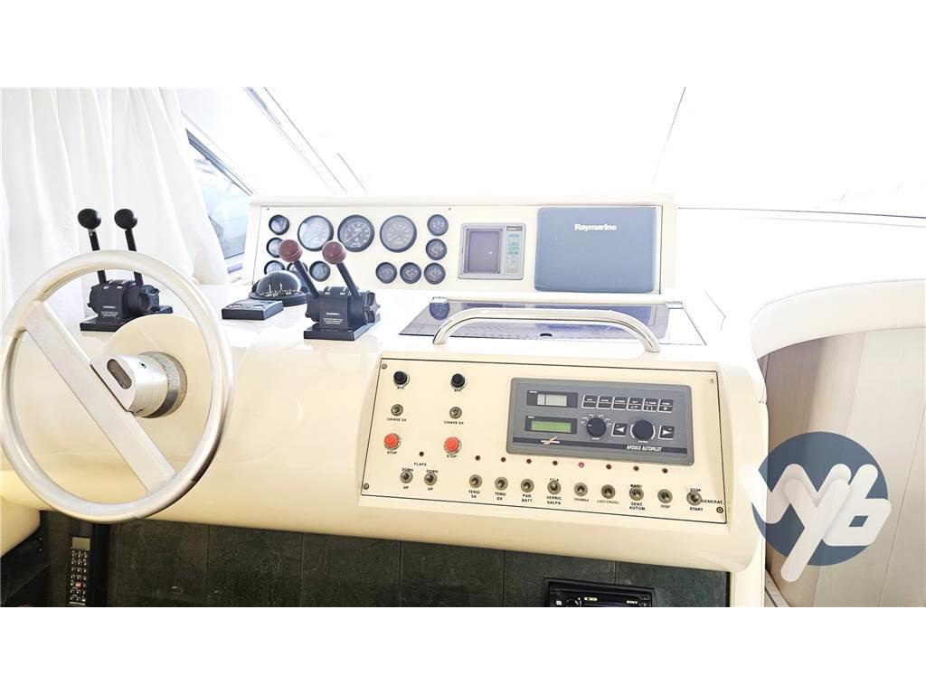 Allarme motore, Allarme sentina, Autogonfiabile, Doccia esterna, Doppia timoneria, Elica di prua - bow thruster, Flap idraulici, Passerella, Pompa di sentina elettrica, Pompa di sentina manuale, Porta ingresso, Pozzetto Teak, Presa 220V banchina, Presa acqua banchina, Salpa Ancore Elettrico, Scaletta da bagno, Tender.