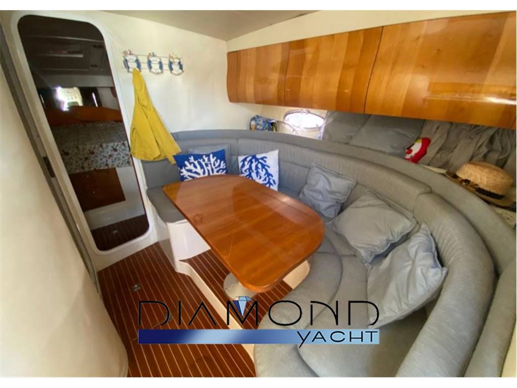 Interni: dinette ampia con divano e tavolo, angolo cucina con frigo, piano cottura 3 fuochi, microonde, lavello. cabina armatoriale di prua, cabina ospiti con letto matrimoniale e bagno.