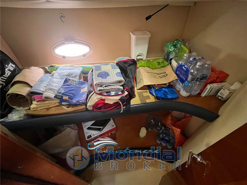 Allarme motore, Allarme sentina, Ancora, Angolo barra, Autoclave, Batterie, Bussola, Caricabatterie (nuovo con dislpay controllo remoto), Comando motori elettronico, Computer di bordo, Contametri catena, Contamiglia, Display, Doccia esterna, Doppia timoneria, Ecoscandaglio, Elica di poppa - stern thruster, Faro orientabile, Flap idraulici (N°2), 2 GPS (plancia e fly (recenti)), Gruette per tender (passerella), Lavaggio catena, Luci subacquee (sotto piattaforma di poppa), Passerella (idraulica), Piattaforma (poppa in teak), Pilota automatico, Plotter con antenna GPS (12" e 9" sul fly), Pompa di sentina automatica, Pompa di sentina elettrica, Porta ingresso, Pozzetto Teak, Presa 220V banchina, Radio VHF, Rollbar, Salpa Ancore Elettrico, Scaletta da bagno, Tromba, Winch tonneggio di poppa, Winch tonneggio di prua