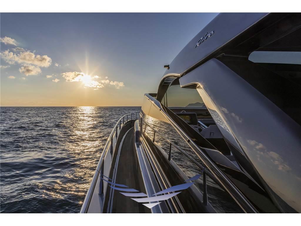 A prua, un'ulteriore area prendisole arricchisce lo spazio abitativo esterno, creando un passaggio fluido per godersi la vita all'aria aperta. All'interno, il salone del ponte inferiore offre una disposizione a pianta aperta con dinette, cucina completamente attrezzata e generosa altezza, creando un'atmosfera luminosa ed ampia che ricorda un moderno loft italiano.