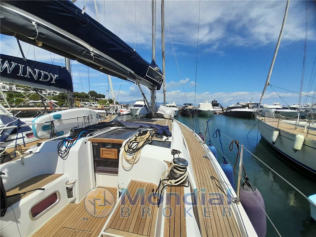 Ponte in teak 8 mmalbero alluminio, due ordini crocette, paterazzo regolabile idraulico Holmatro 6 winches dei quali uno elettrico sulla tuga (Harken B.46.2 STEA H12V UNIPOWER), 8 stopper . 2 bitte abbattibili a mezza nave, 2 oblo supplementari in pozzetto per le cabine di poppa. Pannelli solari aggiuntivi. Scaletta di poppa in acciaio, Cucina a gas con tre fuochi e forno. Piani in corian. Boiler per produzione acqua calda. Bagni con lavandino e doccia, miscelatore, autoclave , pompa espulsione acqua doccia. Il bagno di poppa è elettrico di marca TECMA. In cucina è disponibile sia l'acqua dolce fornita dall'autoclave, sia l'acqua di mare veicolata da una pompa a pedale. Pompe di sentina elettriche a centrobarca e a poppa. Pompa di sentina a mano a centro barca, Inverter Mastervolt 12V/220V 500W. Carica batterie Cristec CPS3 12V/40A, Delfiniera per Gennaker/code zero, rollafiocco incassato nel gavone di prua, vang rigido con pistoni cambiati nel 2023, lazy bag per randa, Piano cucina in corian bianco, lavandino c/miscelatore acqua c/f, forno basculante, due fuochi. 2 frigoriferi: uno a pozzetto ed uno verticale, Quick 1000w 12V motore salpancore cambiato a luglio 2023. Barbotin sostituito a marzo 2025.
