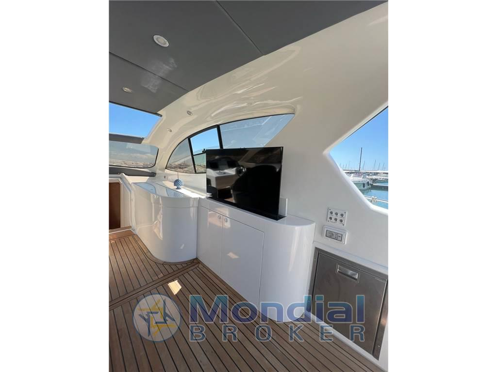 Allarme motore, Allarme sentina, Ancora, Bocche di Lupa, Cavo corrente di banchina, Colorazione speciale, Corrimano di sicurezza, Doccia esterna, Elica di prua - bow thruster, Fari fissi a poppa, Flap elettrici, Flap idraulici, Garage per tender, Hard top, Impianto antincendio, Indicatori Flaps, Lavandino nel Pozzetto, Luci di cortesia, Luci subacquee, Parabordi, Passerella, Piattaforma, Pompa di Scarico del Serbatoio Acque Reflue, Pompa di sentina automatica, Pompa di sentina elettrica, Pozzetto Teak, Presa 220V banchina, Presa acqua banchina, Salpa Ancore Elettrico, Scaletta da bagno, Sistema Depurazione acque nere, Tavolo pozzetto, Tromba, Winch tonneggio di poppa, Winch tonneggio di prua.