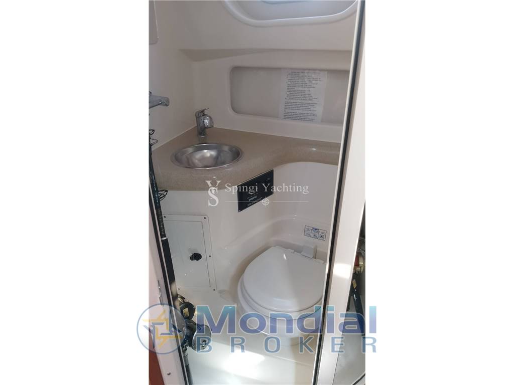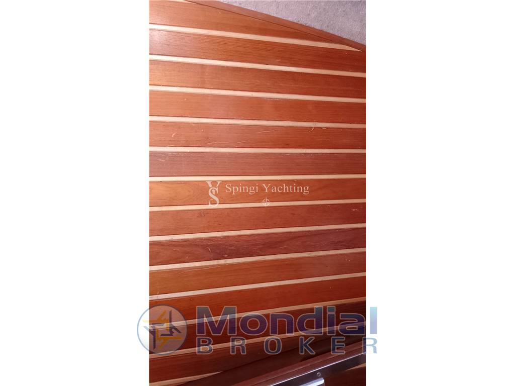Letto doppio a prua in diagonale, dinette trasformabile con rivestimenti in pelle, cucinino, toilette con wc elettrico. Calpestio in legno.