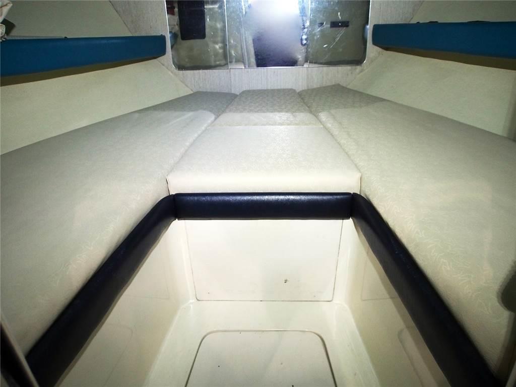 Coperta: la postazione di guida è di tipo automobilistico, con due sedili avvolgenti per pilota e co-pilota, verso poppa un divano per i passeggeri e subito dopo un grande prendisole sopra il locale motori con doccia e tipica scaletta bagno integrata nella poppa.