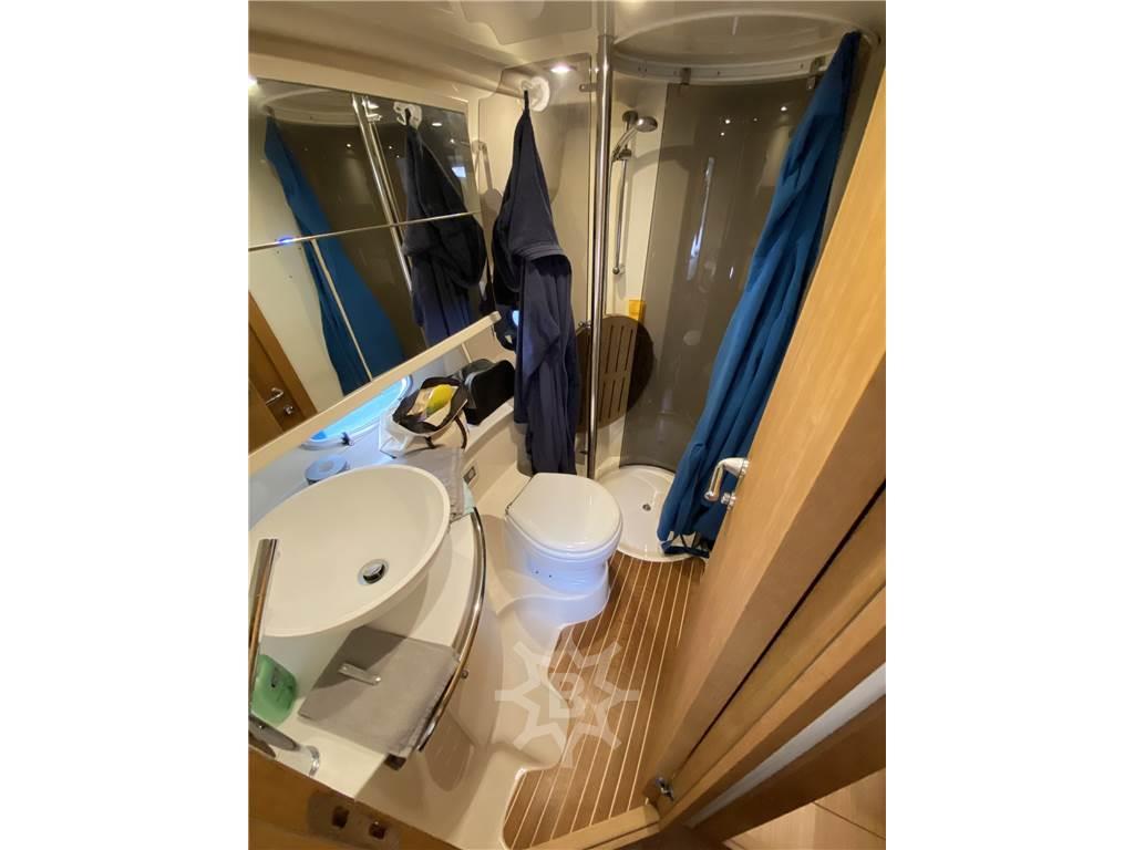 Altoparlanti, Aria condizionata, Cappottina (nuova), Clima reversibile, Copripozzetto (nuovo), Cucina, Cuscineria completa (nuova), Cuscineria di poppa (nuova), Cuscineria di prua (nuova), Cuscineria Pozzetto (nuova), Frigorifero esterno, Frigorifero interno, Impianto acque nere, Impianto TV, Microonde, Piastra in vetroceramica, Prese interne 12v, Prese interne 220v, Stereo, Telo copriconsolle, TV, 2 WC marino elettrico, Pavimento interno in rovere - Piano cucina rifatto nuovo in Corian con pareti e accessori di design - Pavimento bagni in legno