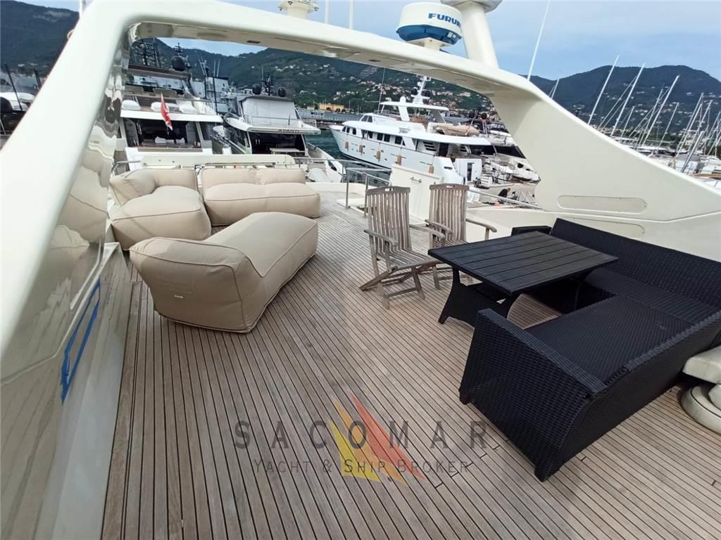 2 Joystick, 2 Pilota automatico, 2 Radio VHF, 2 Winch tonneggio di poppa, 3 Radar, Allarme motore, Angolo barra, Autoclave, Autogonfiabile, Batterie, Bussola, Contamiglia, Doccia esterna, Doppia timoneria, Ecoscandaglio, Elica di prua - bow thruster, GPS, Gruette per tender su fly (portata 680kg), Passerella (IDRAULICA), Piattaforma, Plotter, Pompa di sentina automatica, Pompa di sentina manuale, Raddrizzatore, Rollbar, Salpa Ancore Elettrico, Scaletta da bagno (idraulica), Stabilizzatori (Rodriguez)