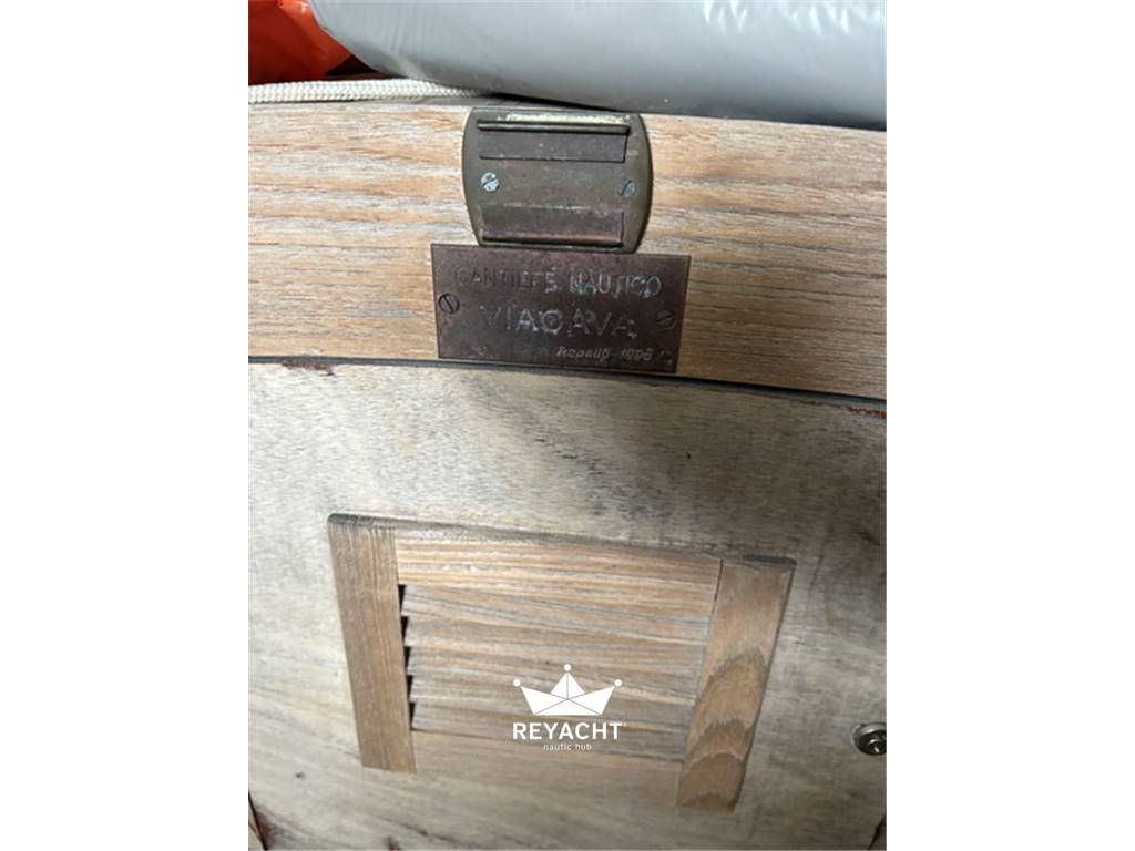 Ruder, Badeleiter, Anker mit Kette, Rutenhalter, vollständige Persenning, Navigationslichter für